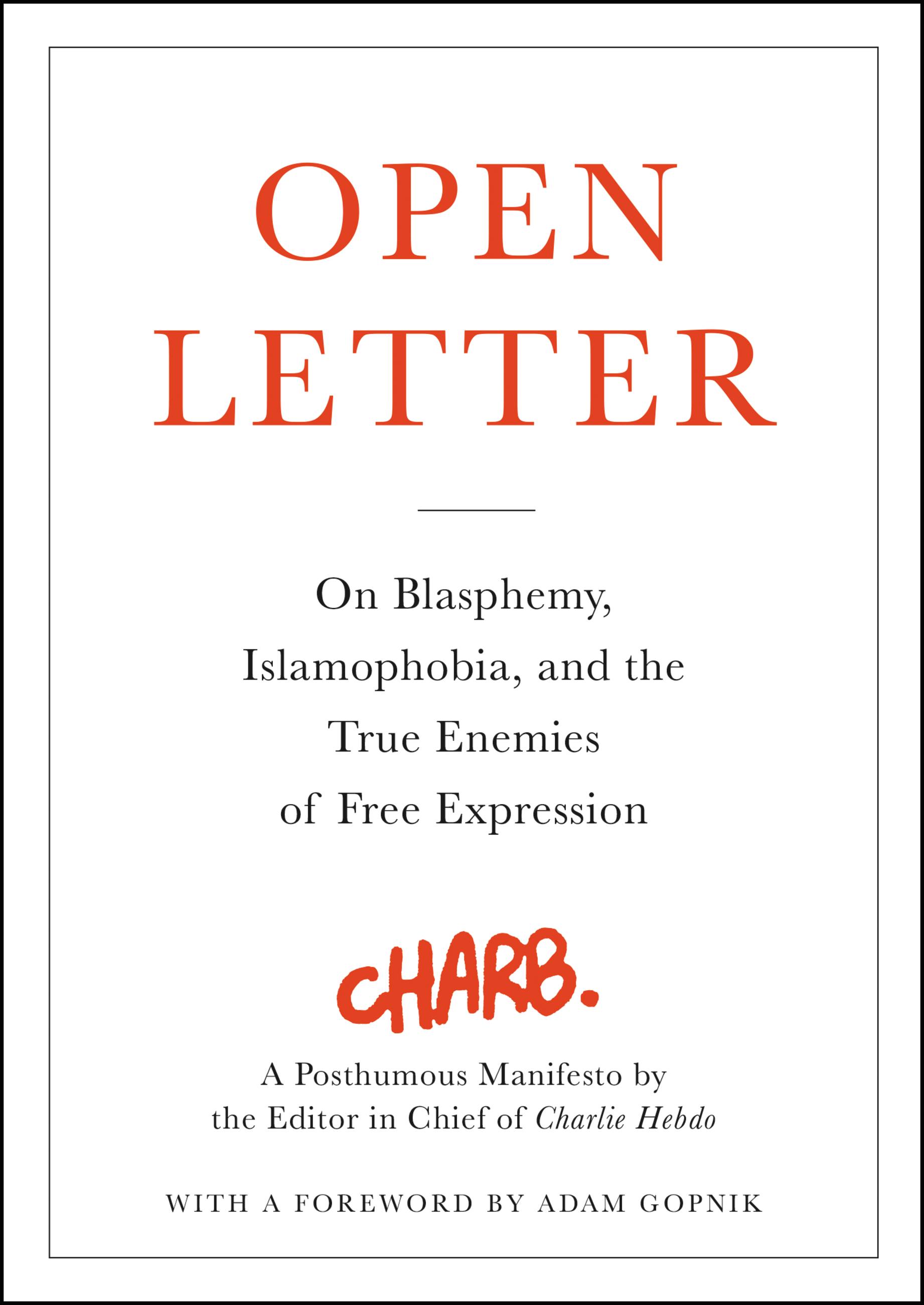Here, published for the first time in English, is Charb’s final work. A searing criticism of hypocrisy and racism, and a rousing, eloquent defense of free speech, Open Letter shows Charb’s words to be as powerful and provocative as his art. This is an essential book about race, religion, the voice of ethnic minorities and majorities in a pluralistic society, and above all, the right to free expression and the surprising challenges being leveled at it in our fraught and dangerous time.