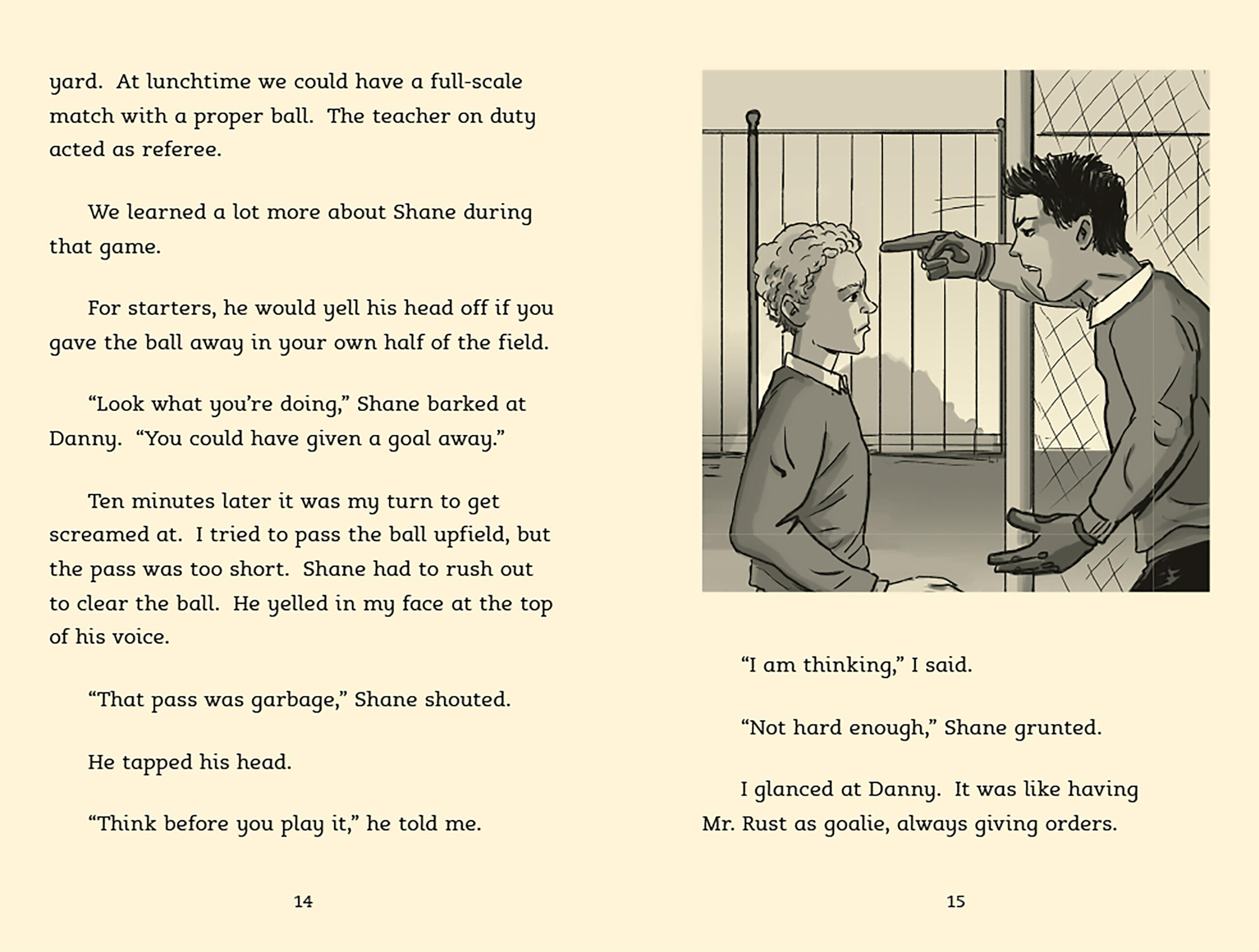 The North Star soccer team is thrilled when Shane, the new boy at school, turns out to be a talented goalkeeper. But Shane has a temper that gets him in trouble and a demanding father who acts out on the sidelines at every game. Soon Shane’s teammates start to worry that something is really wrong—and that Shane’s not nearly as tough as he seems.