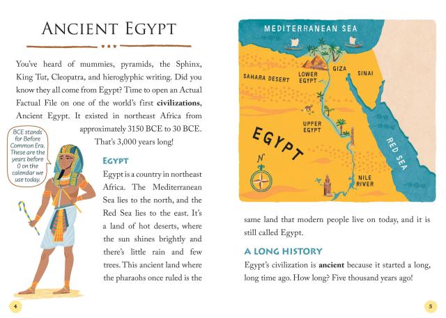 ACTUAL FACTUAL FILES: ANCIENT EGYPT is a friendly, fascinating, and full-of-facts book with supportive features that will make learning about Ancient Egypt accessible to any kid who loves reading non-fiction, is looking for an engaging series they can’t put down. With short chapters, informative illustrations, and a glossary in the back, kids will stay engaged as they learn all about pharaohs, pyramids, and even . . . a mummy curse!