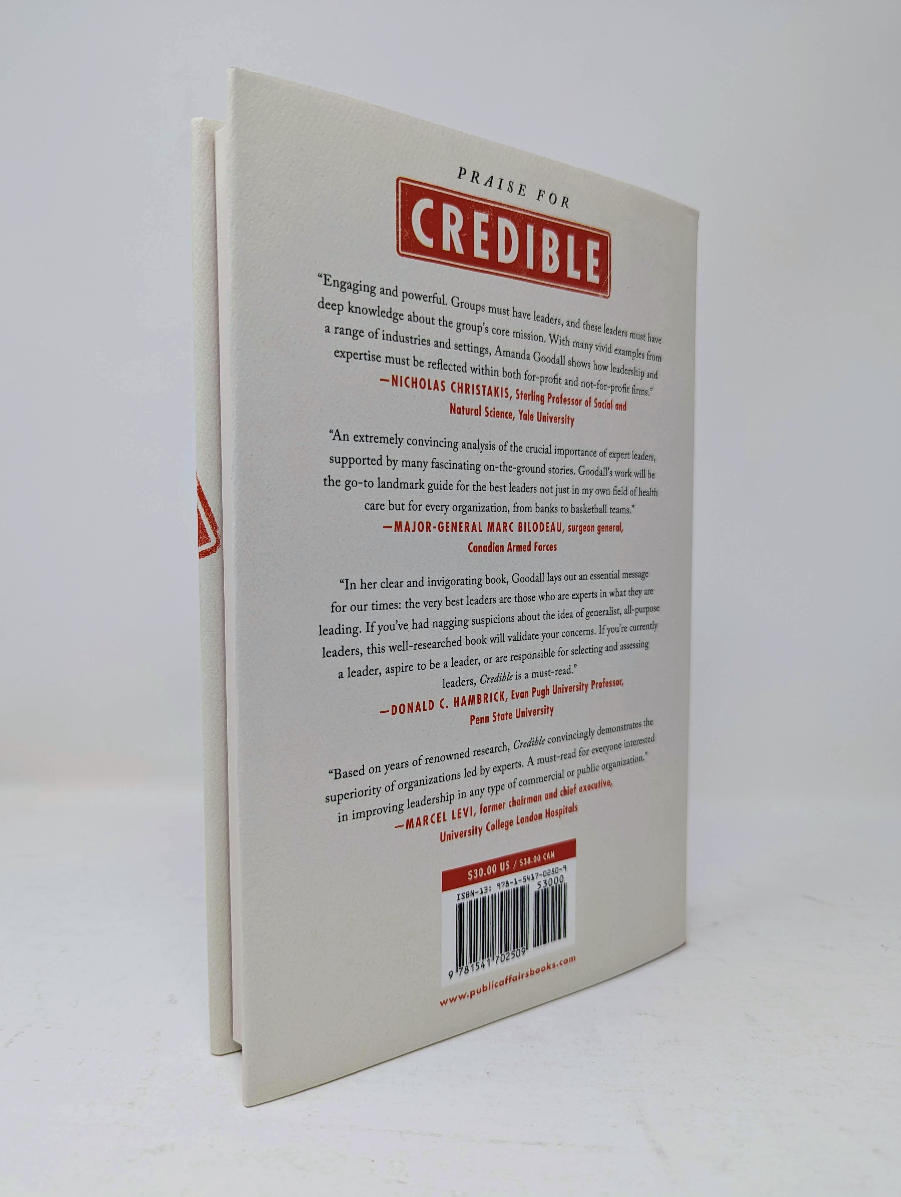 “In her clear and invigorating book, Goodall lays out an essential message for our times: the very best leaders are those who are experts in what they are leading. If you’ve had nagging suspicions about the idea of generalist, all-purpose leaders, this well-researched book will validate your concerns. If you’re currently a leader, aspire to be a leader, or are responsible for selecting and assessing leaders, Credible is a must-read.”Donald C. Hambrick, Evan Pugh University Professor, Penn State University