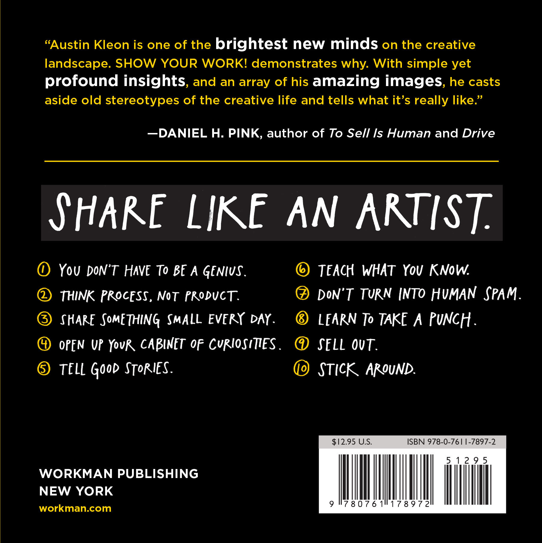 "Austin Kleon is one of the brightest new minds on the creative landscape. Show Your Work! demonstrates why. With simple yet profound insights, and an array of his amazing images, he casts aside old stereotypes of the creative life and tells what it's really like." - Daniel Pink, author of To Sell is Human and Drive