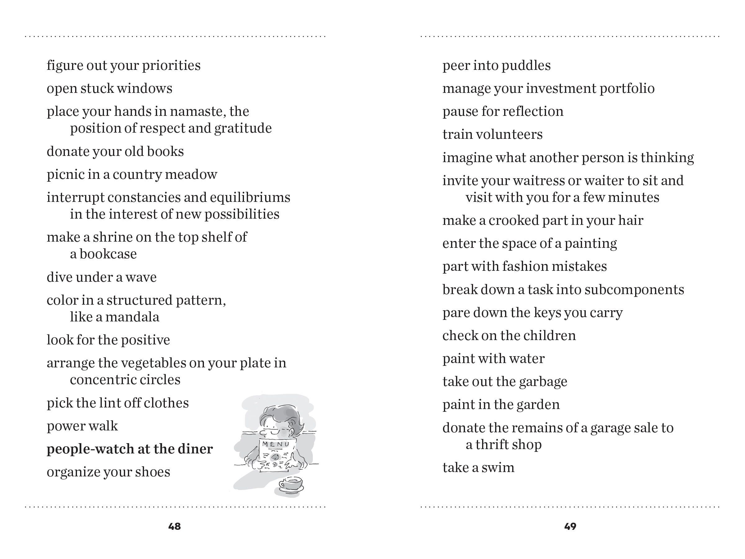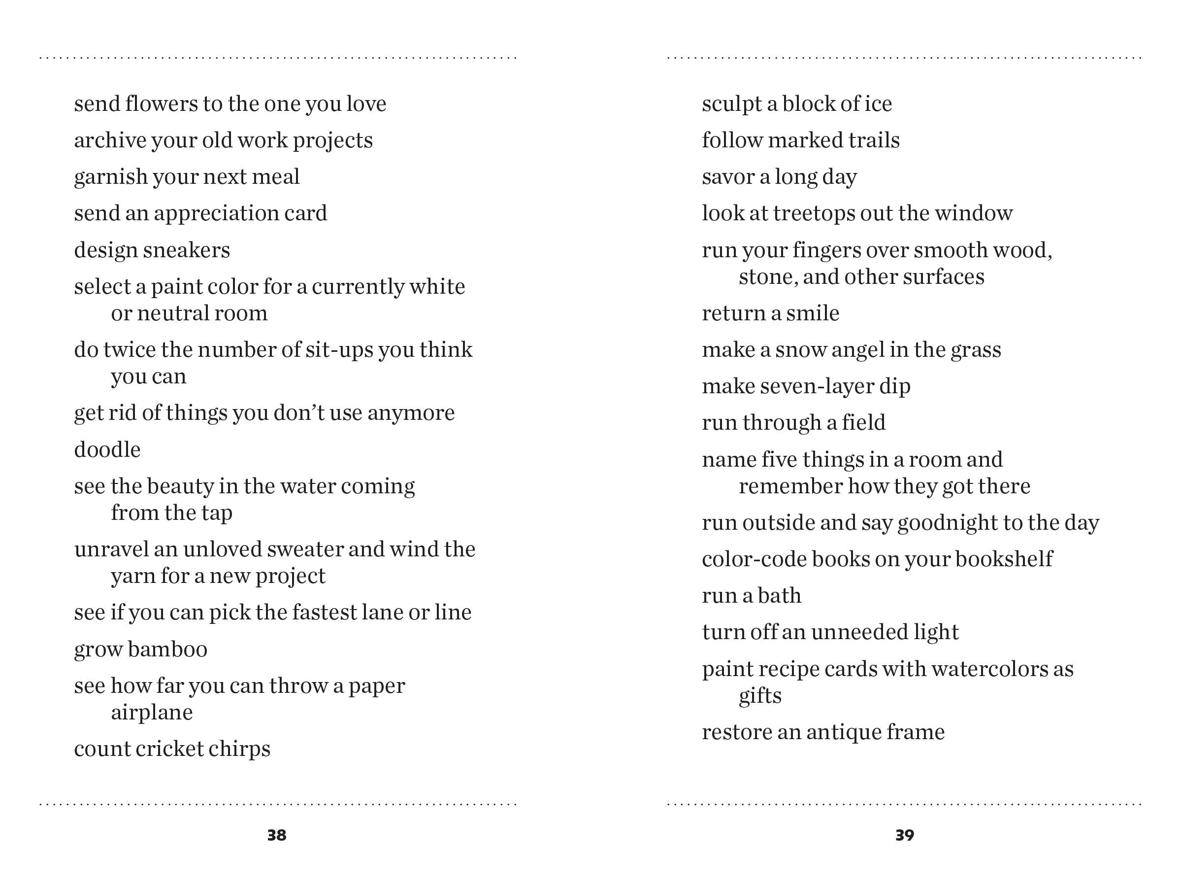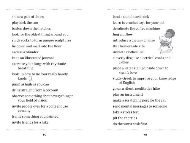 Put down your phone, close the lid on your laptop, and get back in touch with the wonders of the world around you. With thousands of ideas for simple, beautiful things to do instead of scrolling down the rabbit hole of cyberspace, this healing little book offers the opportunity, 5,203 times, to slow down, look up, and rediscover what makes you feel nourished and grounded as a human being. With illustrations throughout by Scot Ritchie.