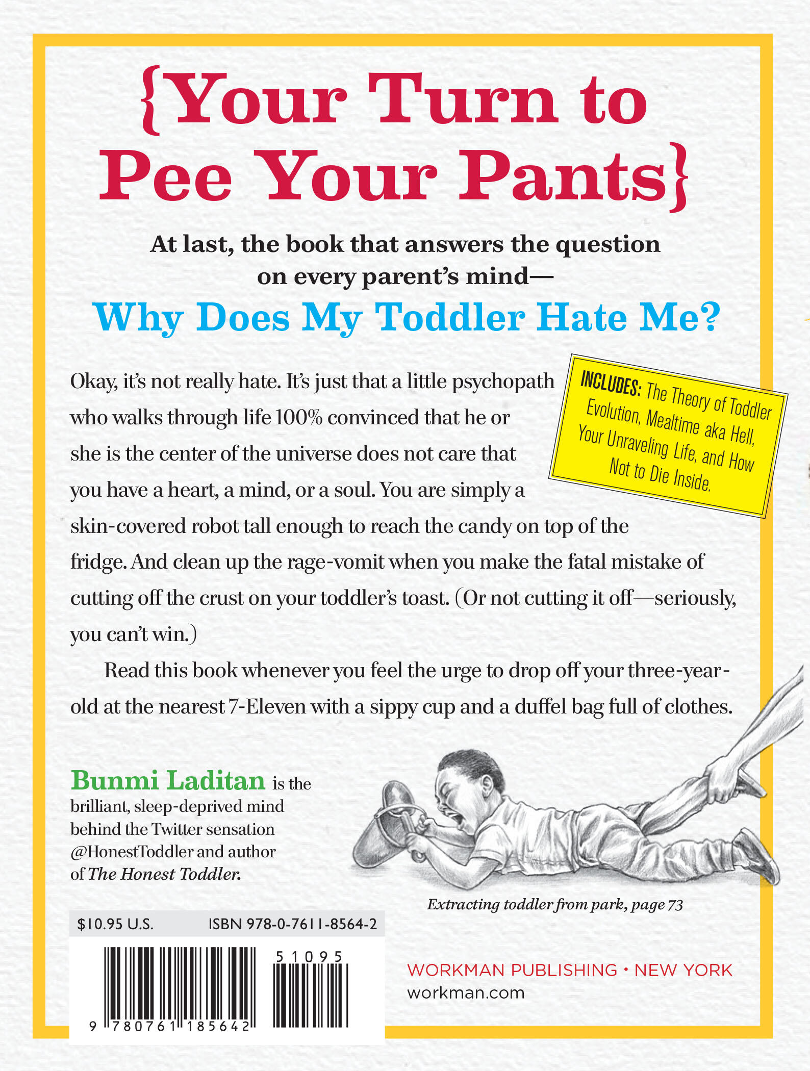 Okay, it’s not really hate. It’s just that a little psychopath who walks through life 100% convinced that he or she is the center of the universe does not care that you have a heart, a mind, or a soul. You are simply a skin-covered robot tall enough to reach the candy on top of the fridge. And clean up the rage-vomit when you make the fatal mistake of cutting off the crust on your toddler’s toast. (Or not cutting it off—seriously, you can’t win.)