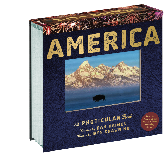 America is a perfect title for the bestselling Photicular series. Using an innovative lenticular-based technology, precision sliding lenses, and four-color video imagery, each image is like a 3D movie on the page, delivering a rich, fluid, immersive visual experience. From wild horses galloping over the plains to the hubbub of New York’s Times Square, Steamboat Willie changing the face of popular entertainment to the majestic aurora over Alaskan skies, it is a uniquely stirring way to celebrate the country’s 250th anniversary!