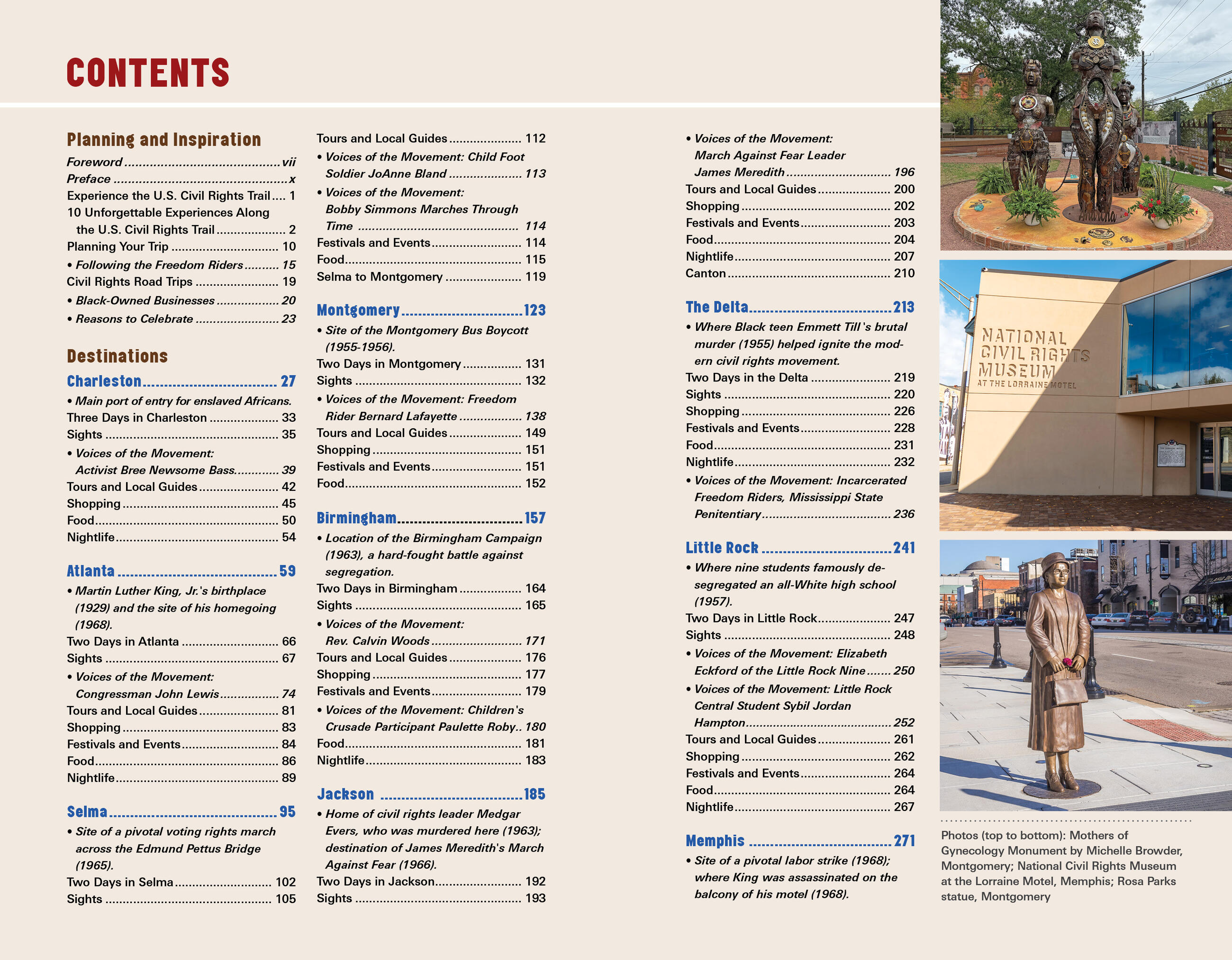 - Detailed coverage of: Charleston, Atlanta, Selma to Montgomery, Birmingham, Jackson, the Mississippi Delta, Little Rock, Memphis, Nashville, Raleigh, Durham, Virginia, and Washington DC