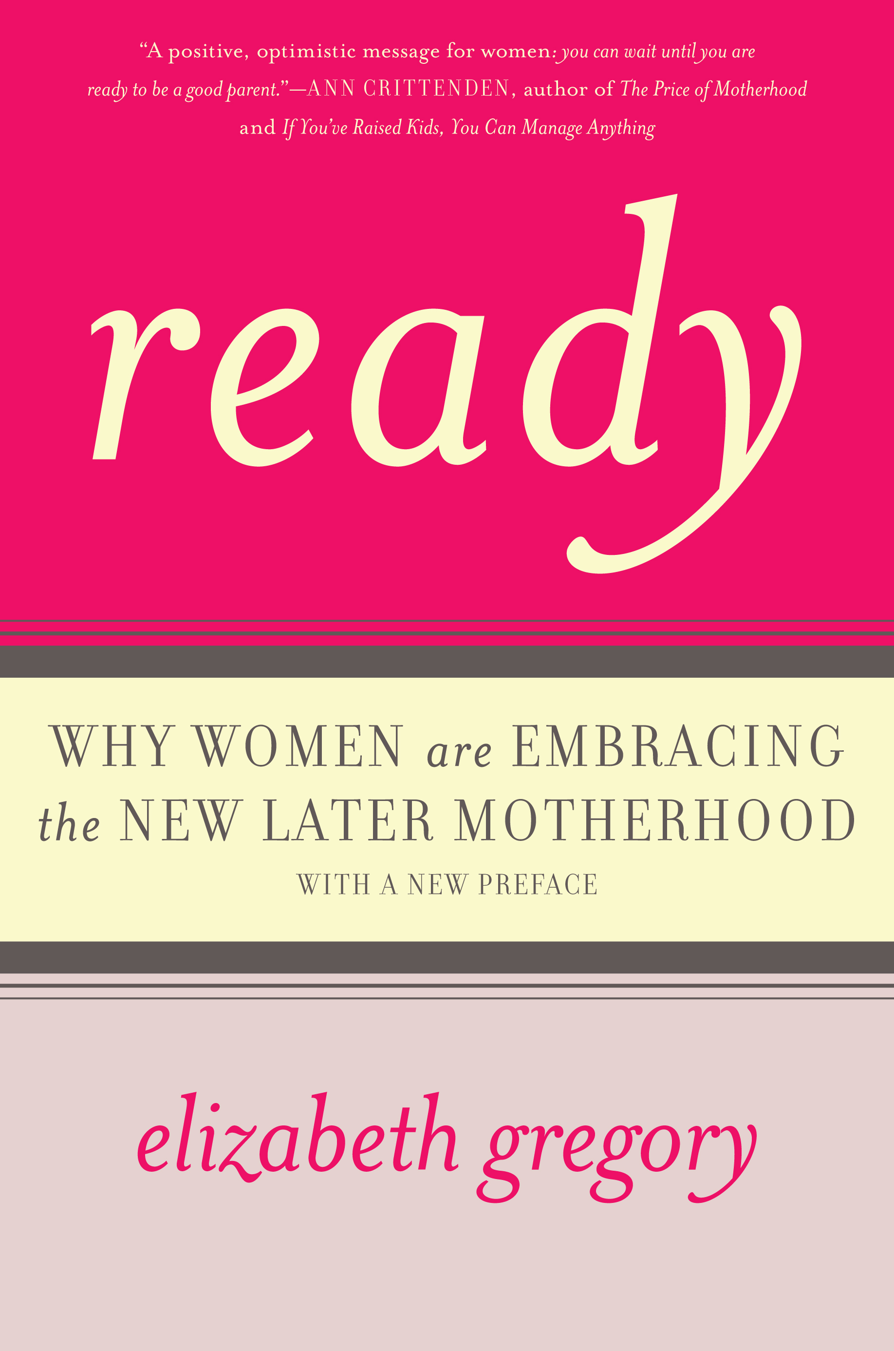 Elizabeth Gregory has discovered the real truth behind all the false alarms over delayed motherhood: that older mothers tend to be very happy with their decision to have children later in life. A positive, optimistic message for women: you can wait until you are ready to be a good parent."Ann Crittenden, author of The Price of Motherhood and If You've Raised Kids, You Can Manage Anything