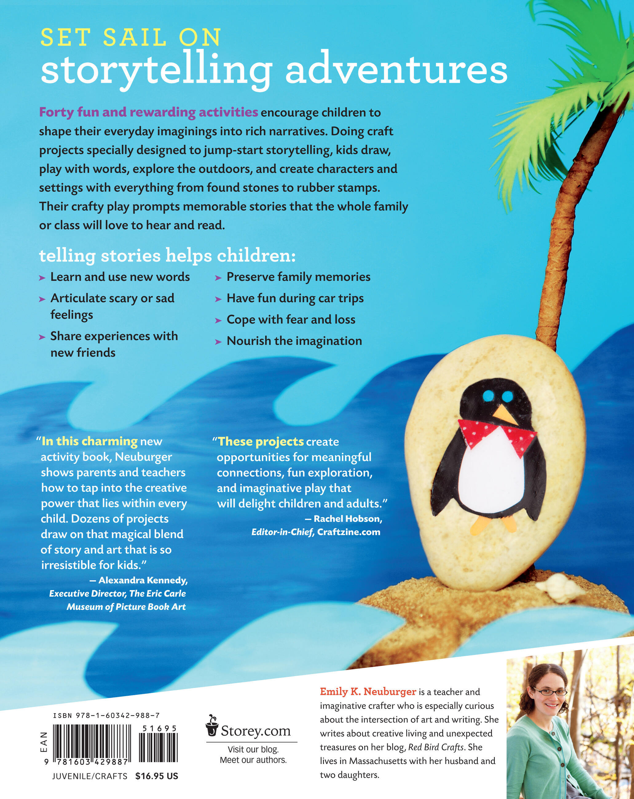 Encouraging children to let their imagination run wild, Emily K. Neuburger offers 40 inventive projects and activities that will inspire kids ages 5 to 12 to express themselves through storytelling. Younger children will love making story stones and a storytelling jar, while older kids will open up and thrive as they embark on guided story walks and inspiring journaling exercises. Sparking creativity while developing a child’s love of language, Show Me a Story will kindle a lifelong passion for both writing and telling original stories.