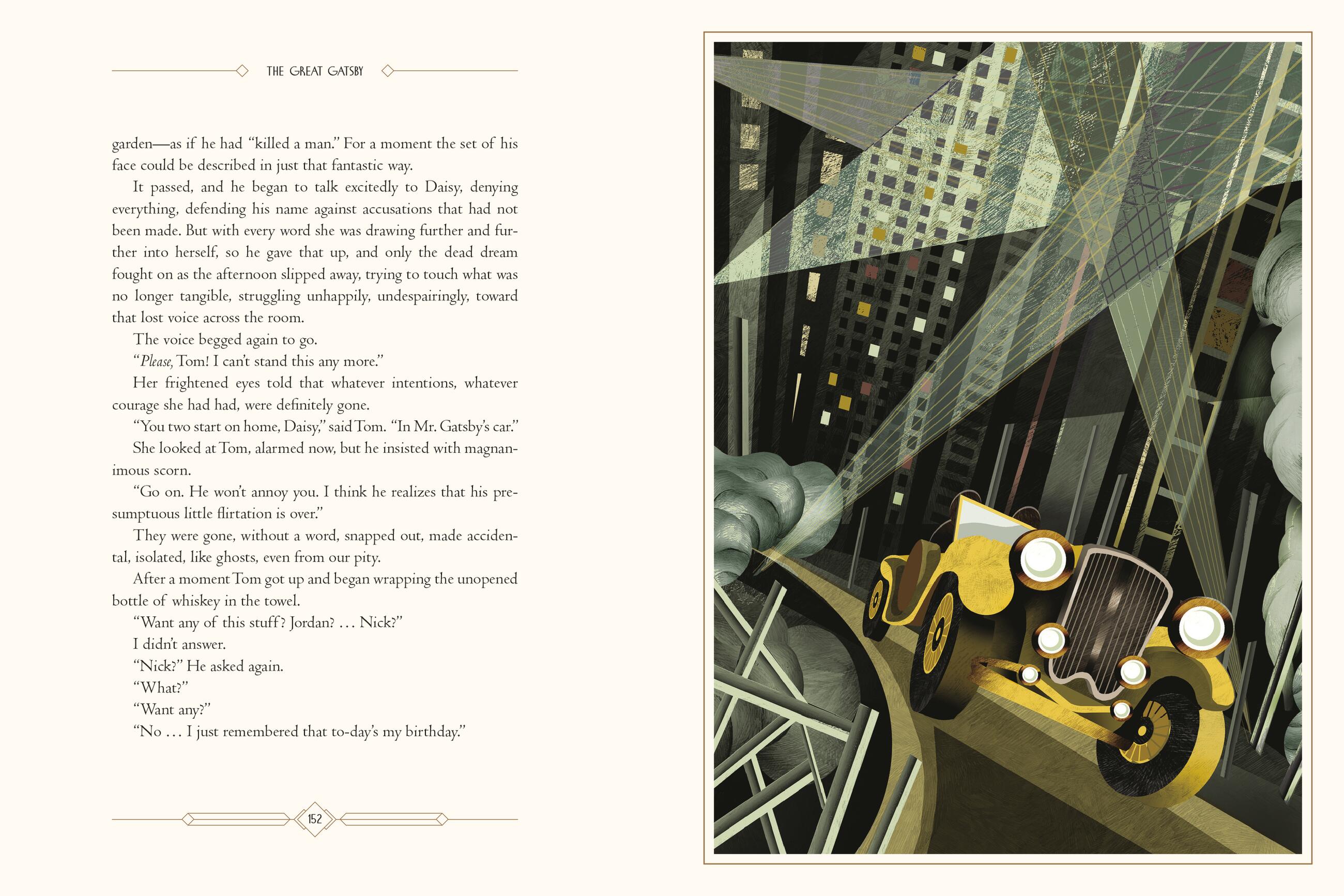 This exquisitely rendered edition of the original 1925 printing reintroduces readers to Fitzgerald’s iconic portrait of the Jazz Age, complete with specially commissioned illustrations by Adam Simpson that reflect the gilded splendor of the Roaring Twenties.