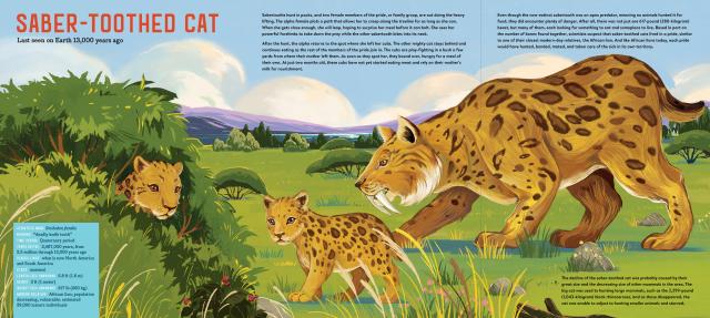 An interactive (complete with gatefolds!), large-format exploration of megafauna, the mostly-extinct class of ginormous animals that thrived during the Pleistocene era after the extinction of the dinosaurs. Meet a giant armored armadillo, a giant sloth, and the three megafauna still found on earth today—African Bush Elephant, Masai Giraffe, and the Blue Whale.