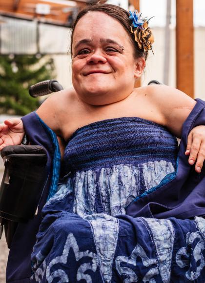 Gaelynn Lea was born with Osteogenesis Imperfecta. Her parents were loving, cash-strapped theater kids, and she grew up racing about in her first electric wheelchair, having adventures with her siblings, and handing out playbills at her parents’ dinner theater shows. Transfixed by an orchestra performance in 5th grade, Gaelynn was determined to play the cello. When her shortened limbs made playing the instrument challenging, she employed a familiar tactic: adapting. What if she held a violin upright in her wheelchair, like the world’s tiniest cello? That what if was the key that unlocked her lifelong music career.
