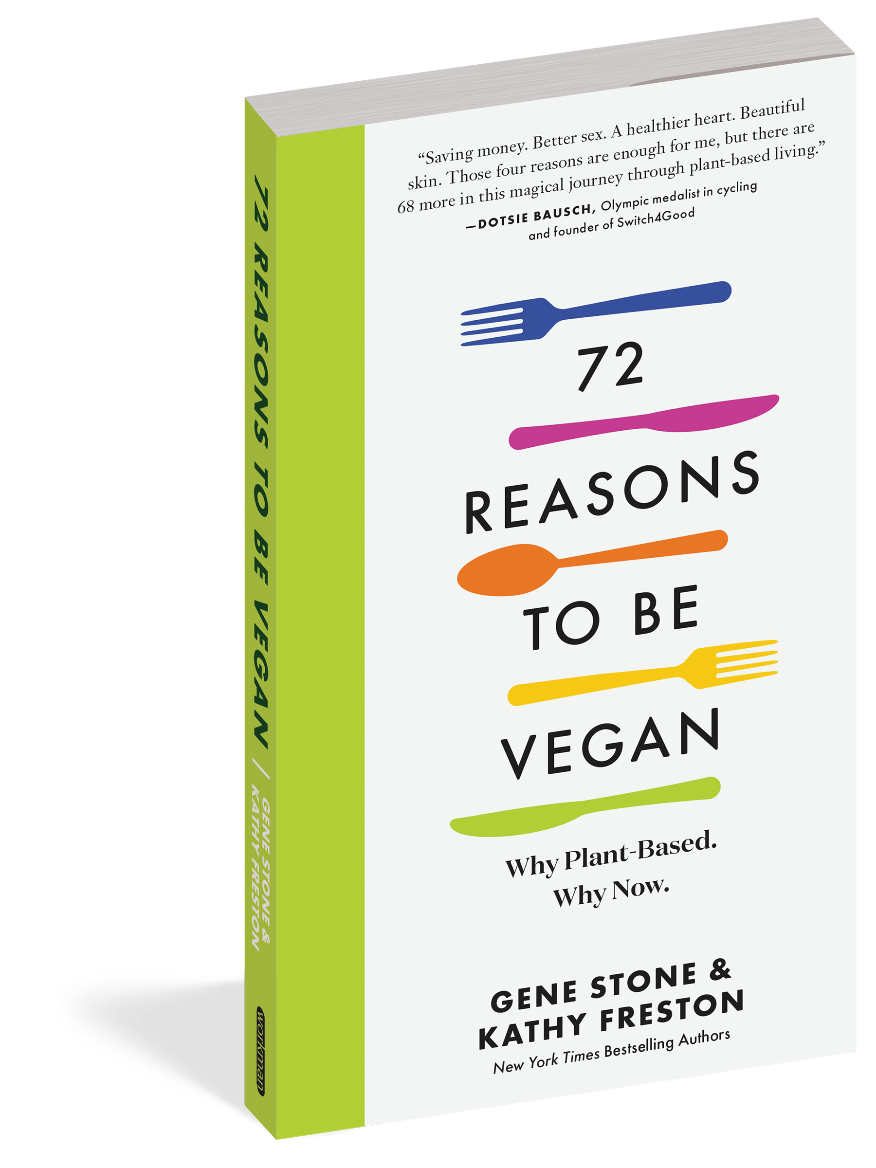 “Saving money. Better sex. A healthier heart. Beautiful skin. Those four reasons are enough for me, but there are 68 more in this magical journey through plant-based living.” B>DOTSIE BAUSCH, Olympic medalist in cycling and founder of Switch4Good