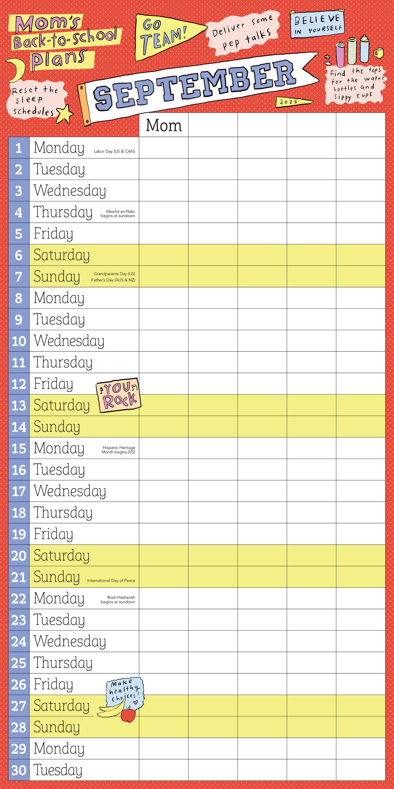 - FOR THE SCHOOL YEAR: 17 months of family organizing, from August 2025 through December 2026!