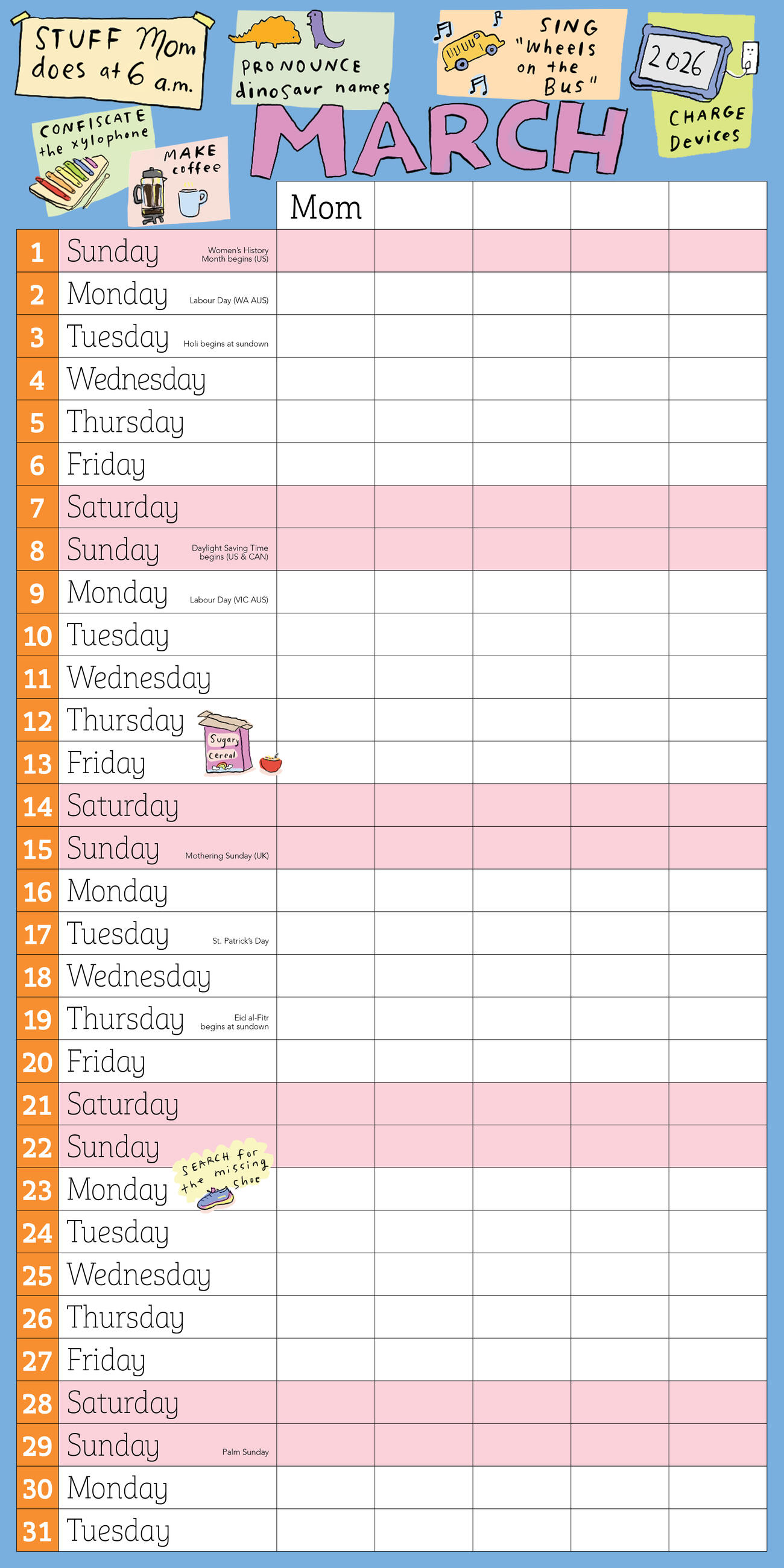 Mom’s Family Wall Calendar 2026