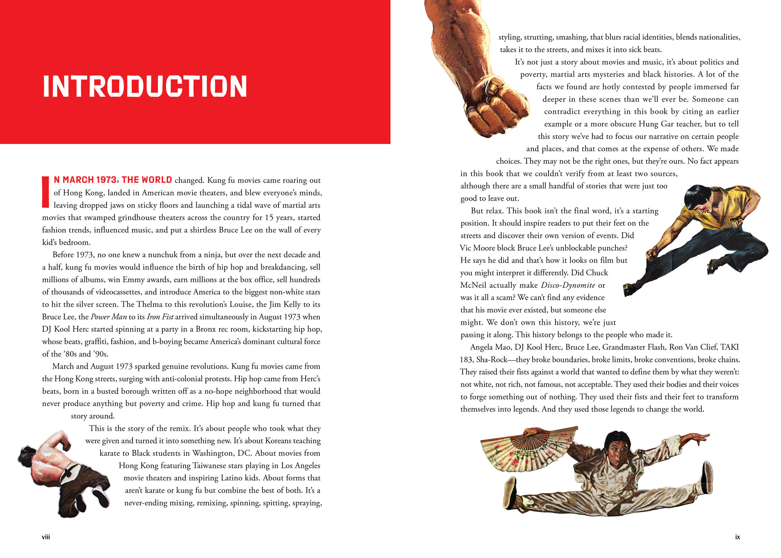 These Fists Break Bricks offers a lavishly illustrated exploration of how these high-kicking, brick-breaking movies came to America and raised hell until greed, infomercials, and racist fearmongering shut them down. For the first time, the full—and wild—story is told, including how CIA agents secretly funded karate movies and how The New York Times fabricated a fear campaign about Black “karate gangs,” as well as the history of Black martial arts in America and the onslaught of Bruce Lee imitators after his death.