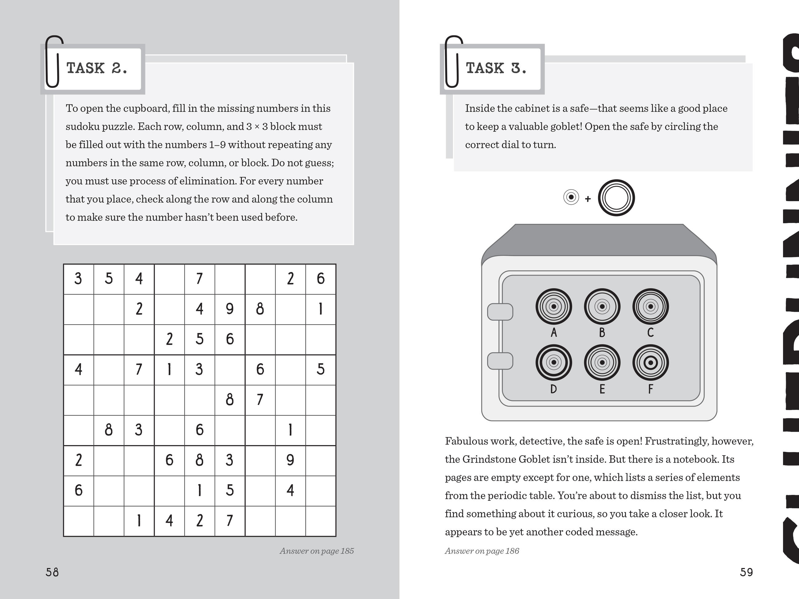Packed full of codes to crack, evidence to evaluate, clues to unravel, and maps to navigate, Cluedle: The Case of the Grindstone Goblet is chockful of puzzling fun!