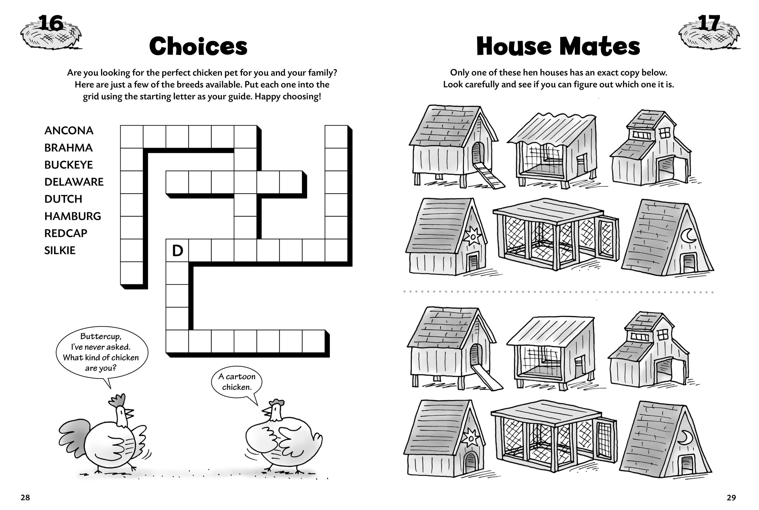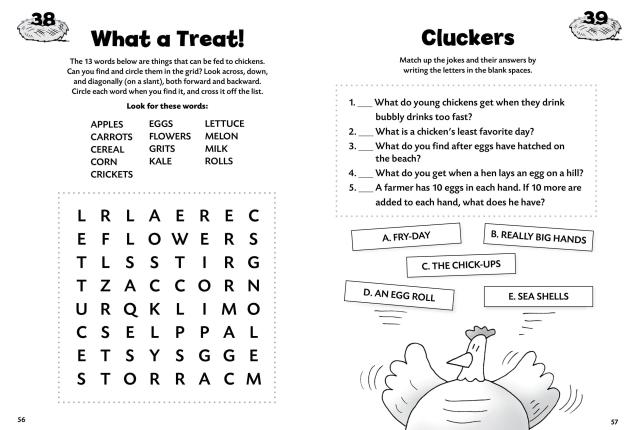 Peck your way through chicken wire mazes and crack some codes while collecting eggs. Kids 6 to 9 will delight in this romp through a barnyard full of brainteasers, word searches, tongue twisters, picture puzzles, and much more. Rudy and Buttercup, two chickens who know their way around the farm, lead you through this engaging and informative book of chicken-themed fun. Cluck and cackle as you solve one fowl riddle after another.