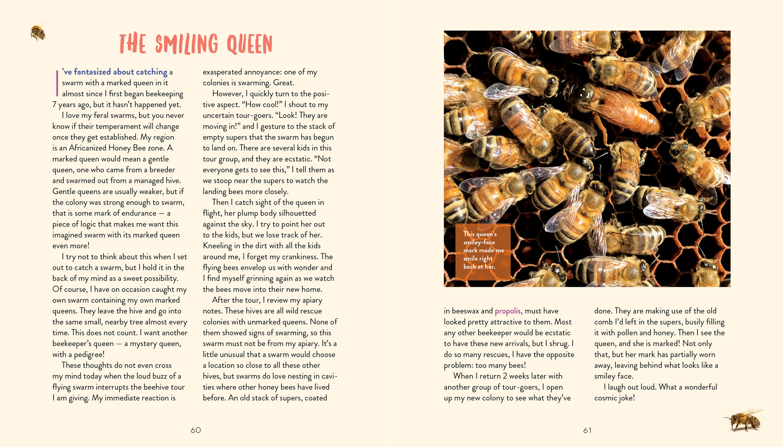 “What a trip! Delightfully written and technically accurate, Queenspotting peeks into the queen’s domain. With fresh prose and charming stories from the field, Kearney leads you through the intricacies of hive life and royal behavior. But more than that, the book is just plain fun. I couldn’t rest until I spotted every wily monarch!” — Rusty Burlew, HoneyBeeSuite.com