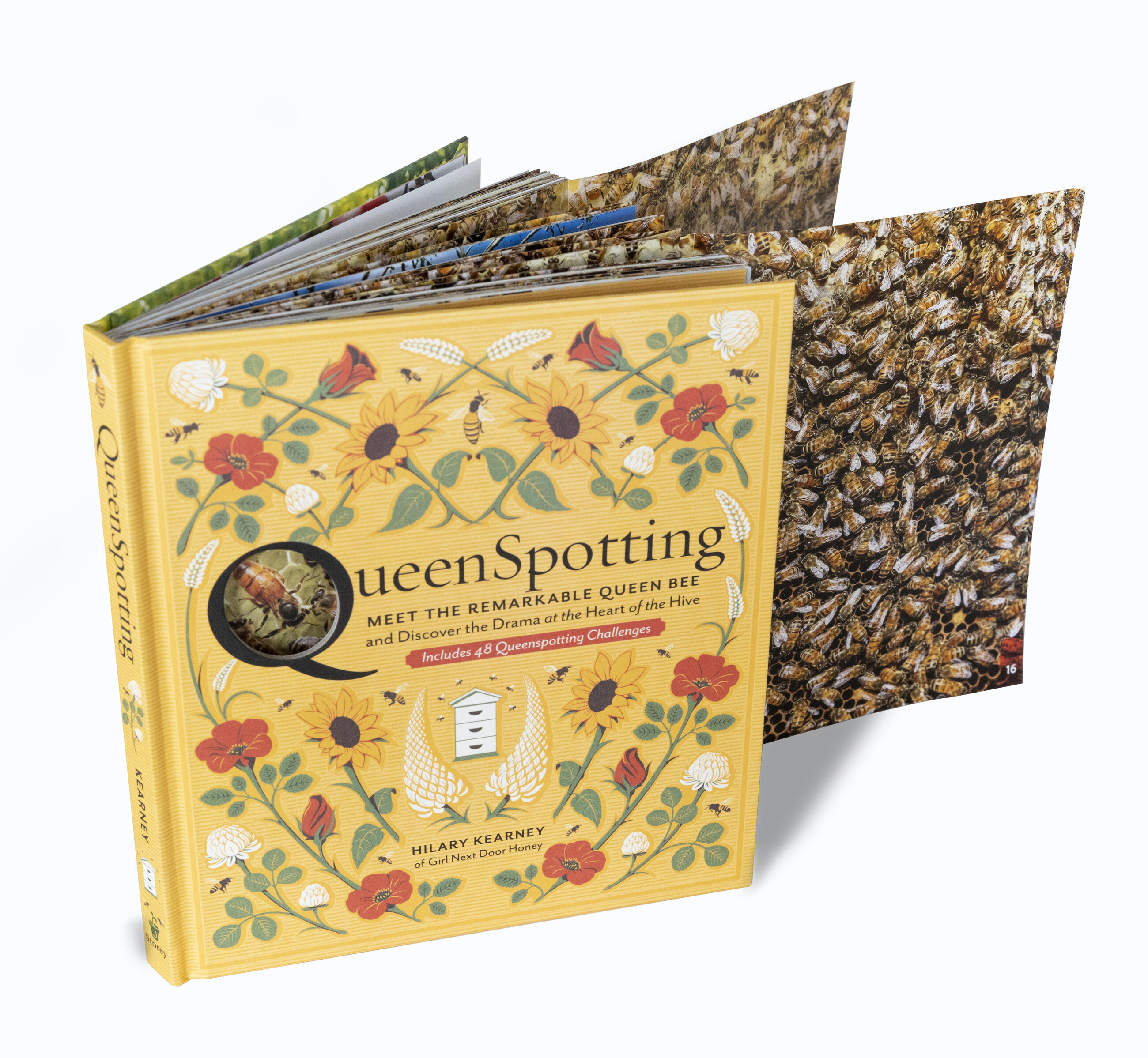 At the heart of every bee hive is a queen bee. Since her well-being is linked to the well-being of the entire colony, the ability to find her among the residents of the hive is an essential beekeeping skill. In QueenSpotting, experienced beekeeper and professional “swarm catcher” Hilary Kearney challenges readers to “spot the queen” with 48 fold-out visual puzzles — vivid up-close photos of the queen hidden among her many subjects.