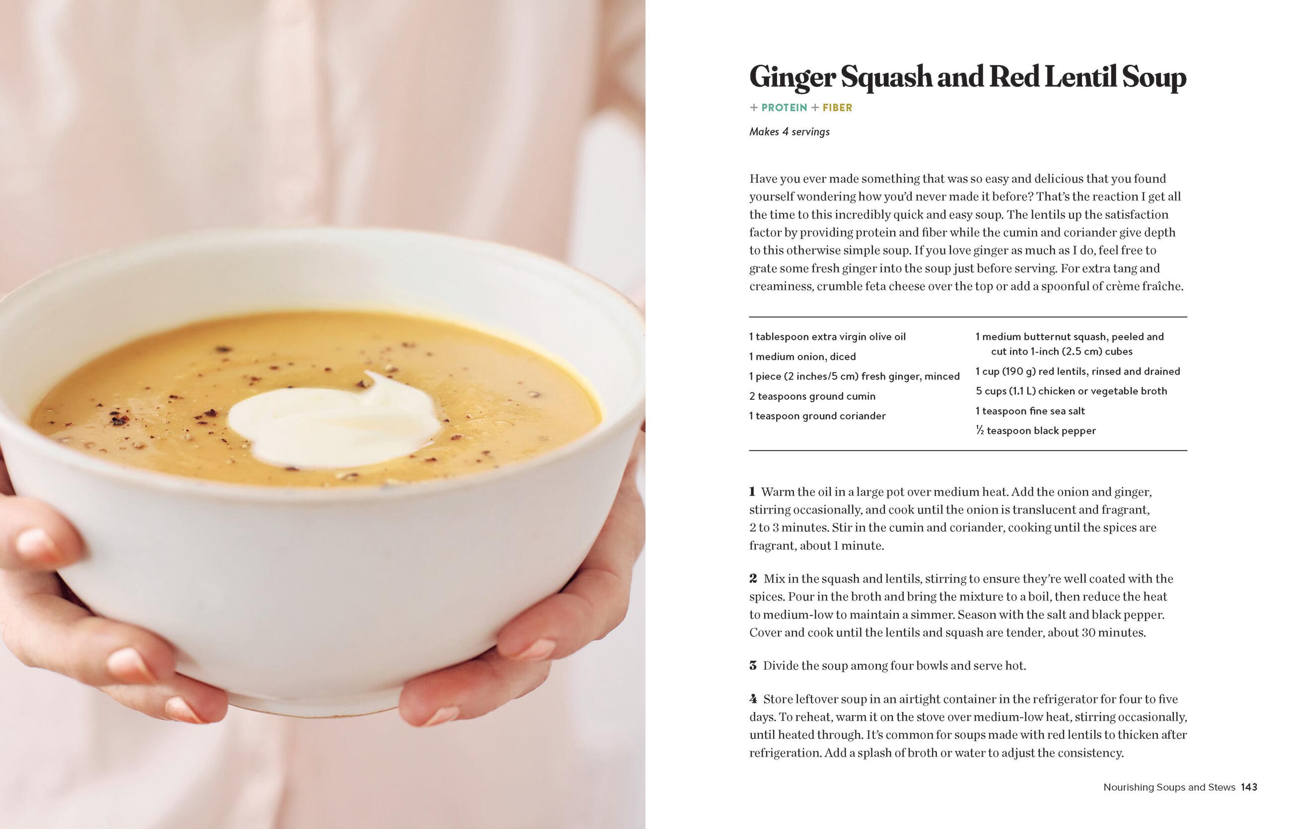 - Ginger Squash Red Lentil Soup—good for protein and fiber