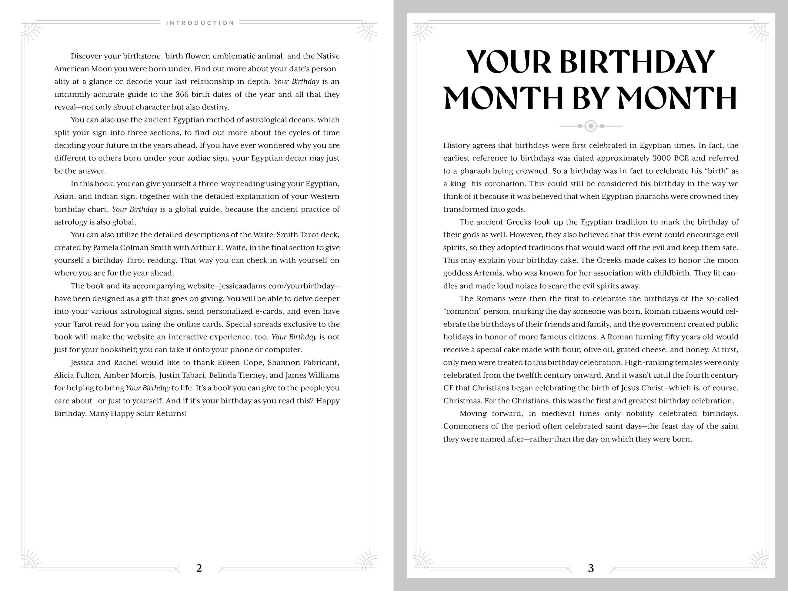 In the second half of the book, readers will gain a wholly unique understanding of their birthday through a nuanced and specific discussion of tarot. Each of the 78 cards is explored in-depth and contextualized within its appearance within birthday-specific tarot spreads. Further parallels are drawn between birthday readings and the specific imagery and history of Pamela Colman Smith’s iconic Rider-Waite-Smith deck.