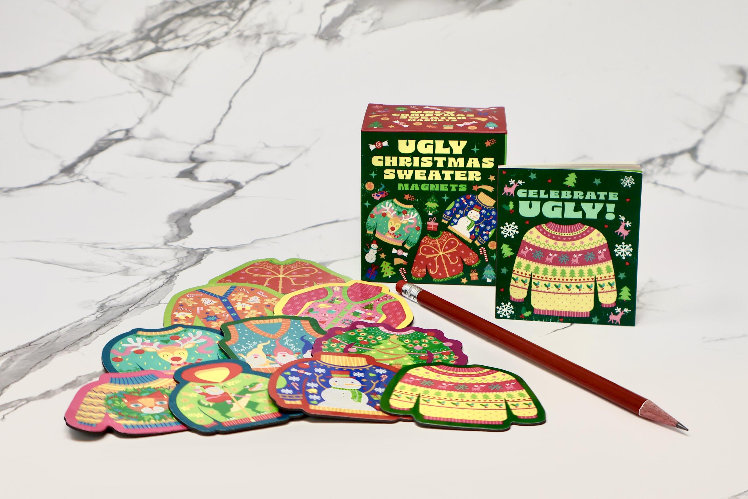 - Specifications: Includes 10 illustrated ugly Christmas sweater magnets