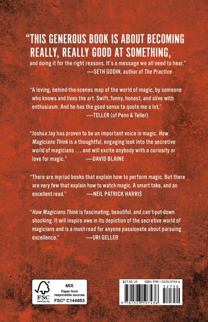 "[How Magicians Think] is delightful in being both a how-to book for aspiring artists and an in-depth view of the world of magic and its artisans. Jay is refreshingly candid in how he views his work, often self-deprecating, but always serious about his passion for his trade. An entertaining book from start to finish."Booklist “Joshua Jay is a superb, innovative conjurer with an unrelenting love of the art. This captivating book is proof of that passion.” —David Copperfield “A loving, behind-the-scenes map of the world of magic, by someone who knows and lives the art. Swift, funny, honest, and alive with enthusiasm. And he has the good sense to quote me a lot.” —Teller (of Penn Teller) “Joshua Jay has proven to be an important voice in magic. How Magicians Think is a thoughtful, engaging look into the secretive world of magicians. This book will excite anybody with a curiosity of love for magic.” —David Blaine “How Magicians Think is fascinating, beautiful, and can't-put-down shocking. It will inspire awe in its depiction of the secretive world of magicians and is a must-read for anyone passionate about pursuing excellence.” —Uri Geller “In How Magicians Think, the great Joshua Jay reveals a magician's greatest secret—not a secret shuffle or how they kept a dove alive in their pants for four hours —but how they think. The answer? Differently, creatively, and beautifully. I mean, how can you not love someone who's devoted their life to making you feel wonder?” —Pete Holmes, comedian and author of Comedy Sex God “How Magicians Think is one of the most remarkable books I have ever read! Joshua Jay is a genius storyteller who has distilled a life’s worth of insights into a single book, and the result is magical.” —Steven Levitt, co-author of Freakonomics “A must-read for anyone who loves magic. Joshua Jay is not only a world class performer, but he is a thought-leader in magic. Whatever your passion, you'll find inspiration and motivation in these pages. I couldn't put it down.” —Jon Dorenbos, NFL Superbowl champion and best-selling author