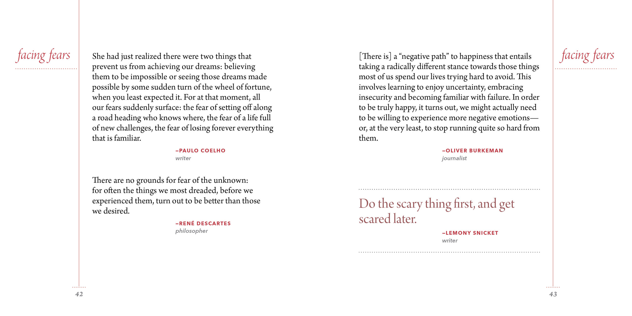 When change comes we have two options: Resist it, and lose. Or go with the flow, and grow. Which means there’s really just one option—embracing change is the only path to living your true life. So laugh at it, with George Carlin. Celebrate it, like Patti Smith and David Bowie. Above all, grow with it, like Maya Angelou, Stephen Hawking, Rebecca Solnit, Rumi, and so many others. Arranged alphabetically by subject—including Adapting, Control, Faith, Letting Go, New Beginnings, Surprises—CHANGE HAPPENS is the book that says: You can do this…as often as you need to hear it.