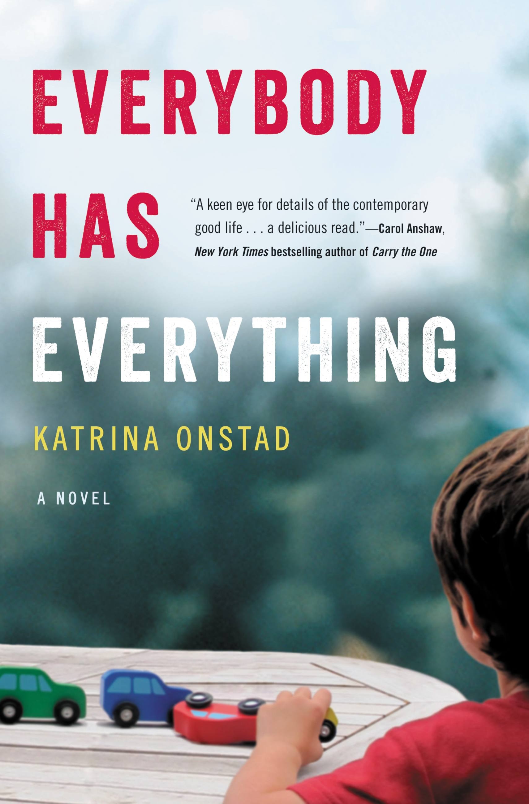 "Katrina Onstad's beautiful new novel is a clear-eyed look at an ordinary marriage under extraordinary pressure. Everybody Has Everything is about many things - family, friendship, responsibility, loss - but at its heart, it's about what happens when the person you love suddenly veers off in another direction. It is unflinching yet tender, gripping and lyrical and devastating. I can't stop thinking about it."Lauren Fox, author of Friends Like Us and Still Life with Husband