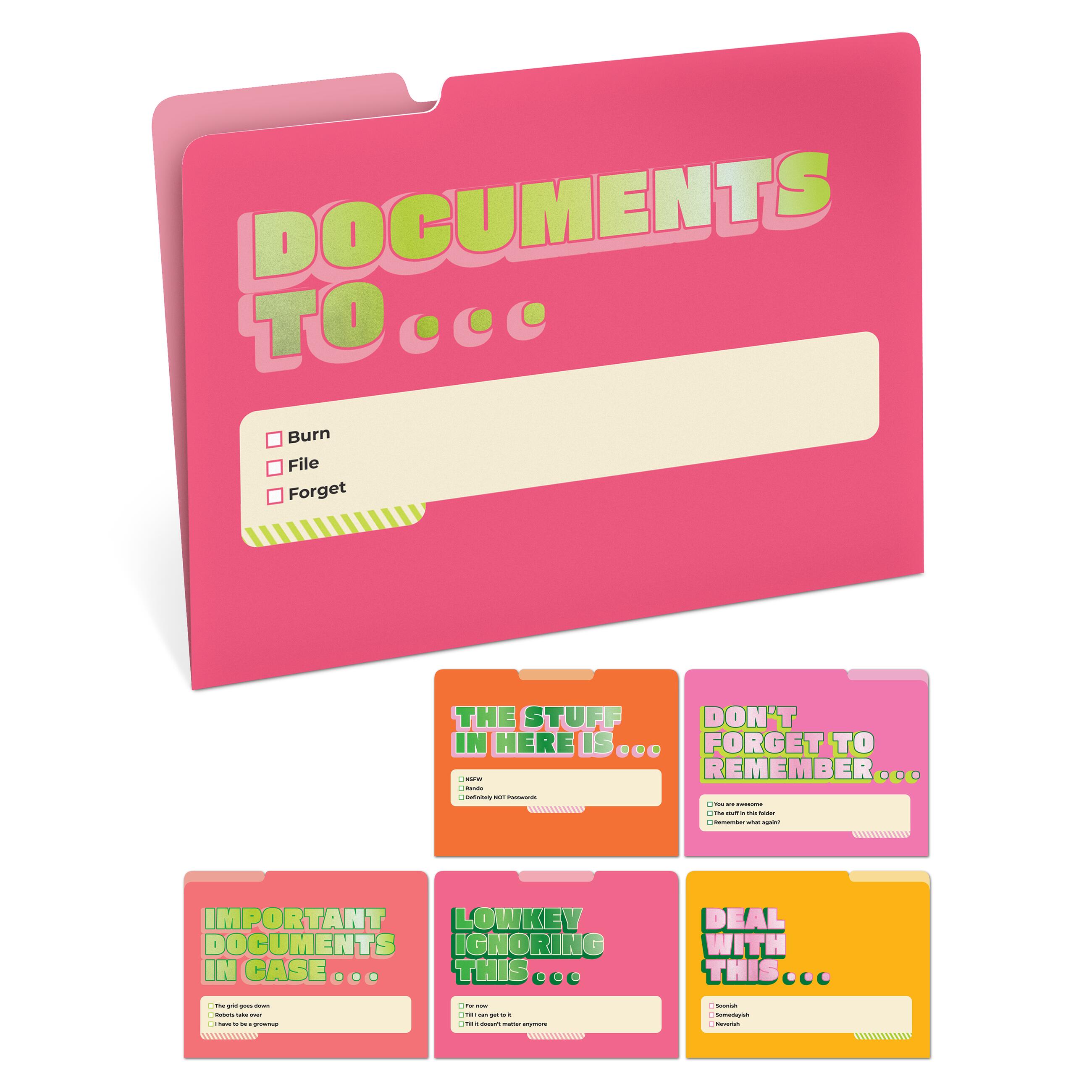 Each folder in this set features a uniquely witty message and colorful design with foil stamping, perfect for your home office, workplace, desk, countertop (or backpack!). Each folder is also printed on the inside with dedicated spots for notes, project management, doodles & more!
