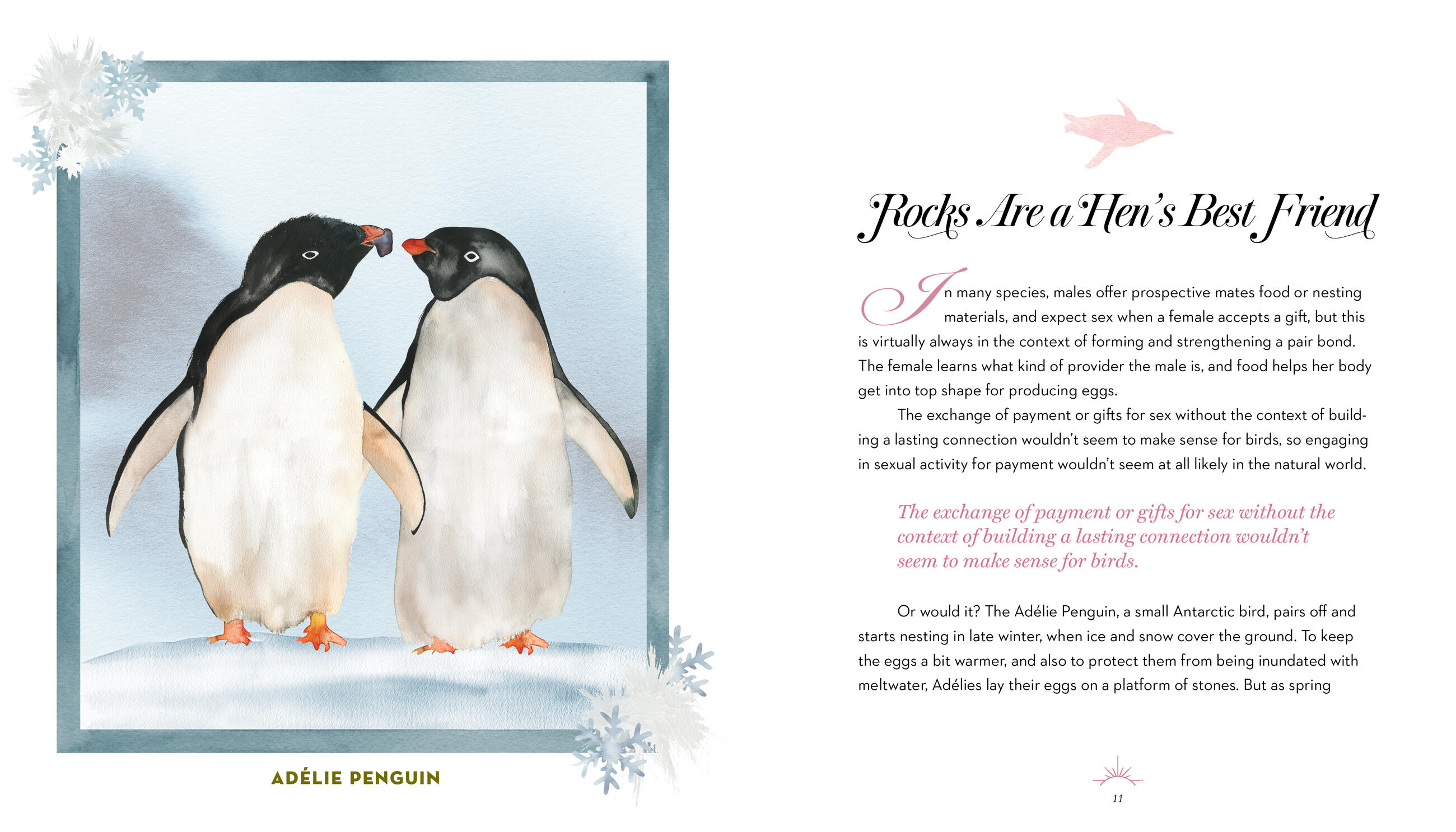 “What a delightful book! If you love birds, you will love these musings on the secrets of bird love. Who knew that crows had such tender and discreet displays of affection? Or that the courtship of limpkins was so snail-centered? Or that chickadees inhabit a Jane Austen-like world of courter and courted? Erickson unveils this captivating news in prose so lively, witty, and clever it charms from cover to cover.”