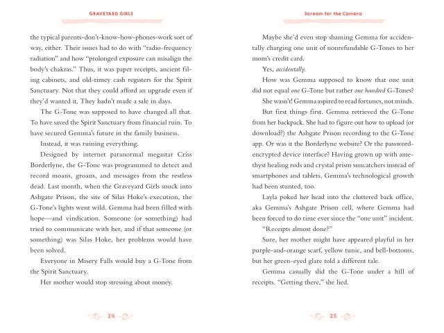 Speaking of bad news, straight-A Sophie is quickly sliding down the scale to becoming a B-flat friend. She is spending way more time hanging out with “Danger Me” and way less time with the Graveyard Girls and her schoolwork. Will her scary story be enough to win back her pals, or will her picture-perfect life become the ultimate photo bomb?
