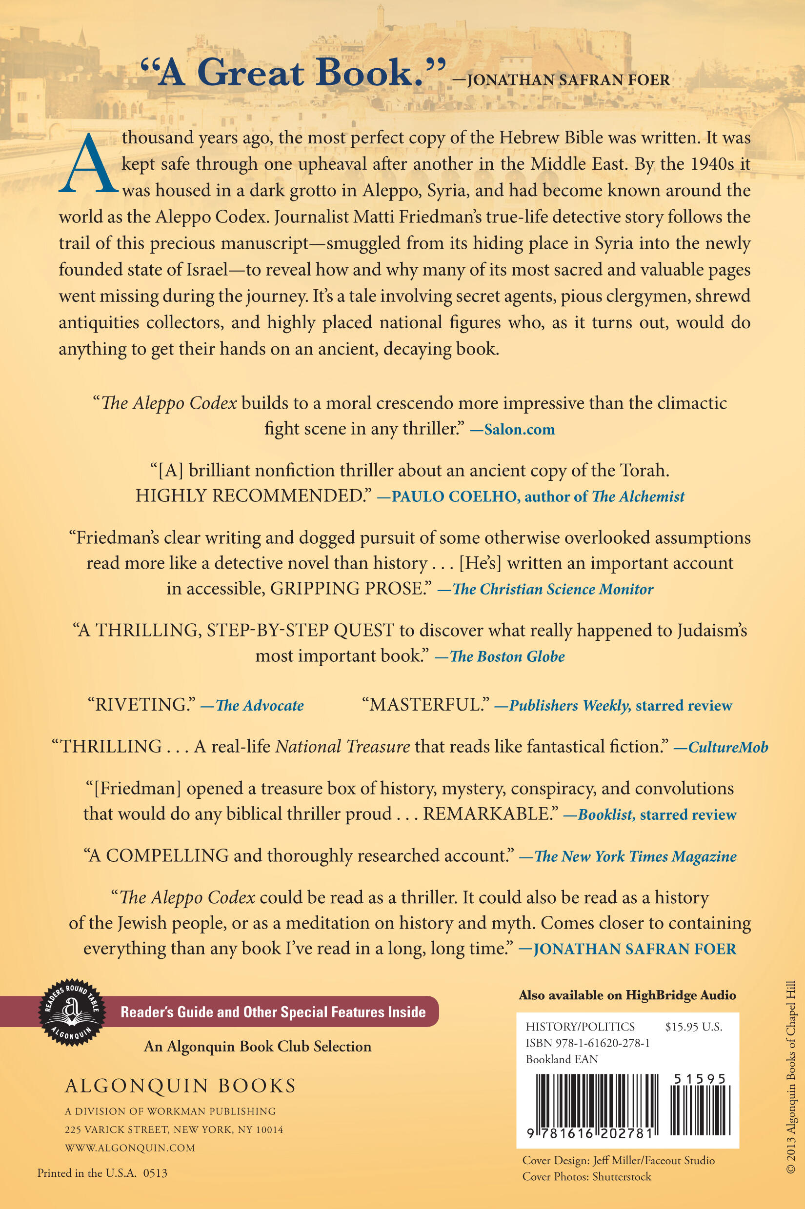 “The Aleppo Codex builds to a moral crescendo more impressive than the climactic fight scene in any thriller.”—Salon
