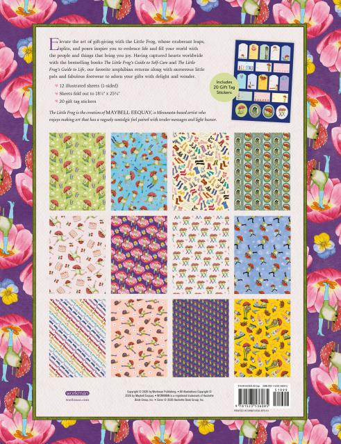 The Little Frog is here to help you gift in style. This set of twelve high-quality wrapping papers and matching gift labels is patterned with the whimsy of Maybell Eequay’s adorable amphibian art. Wrapping paper sheets detach easily and unfold to be 18 ⅞” by 25 ¾”.