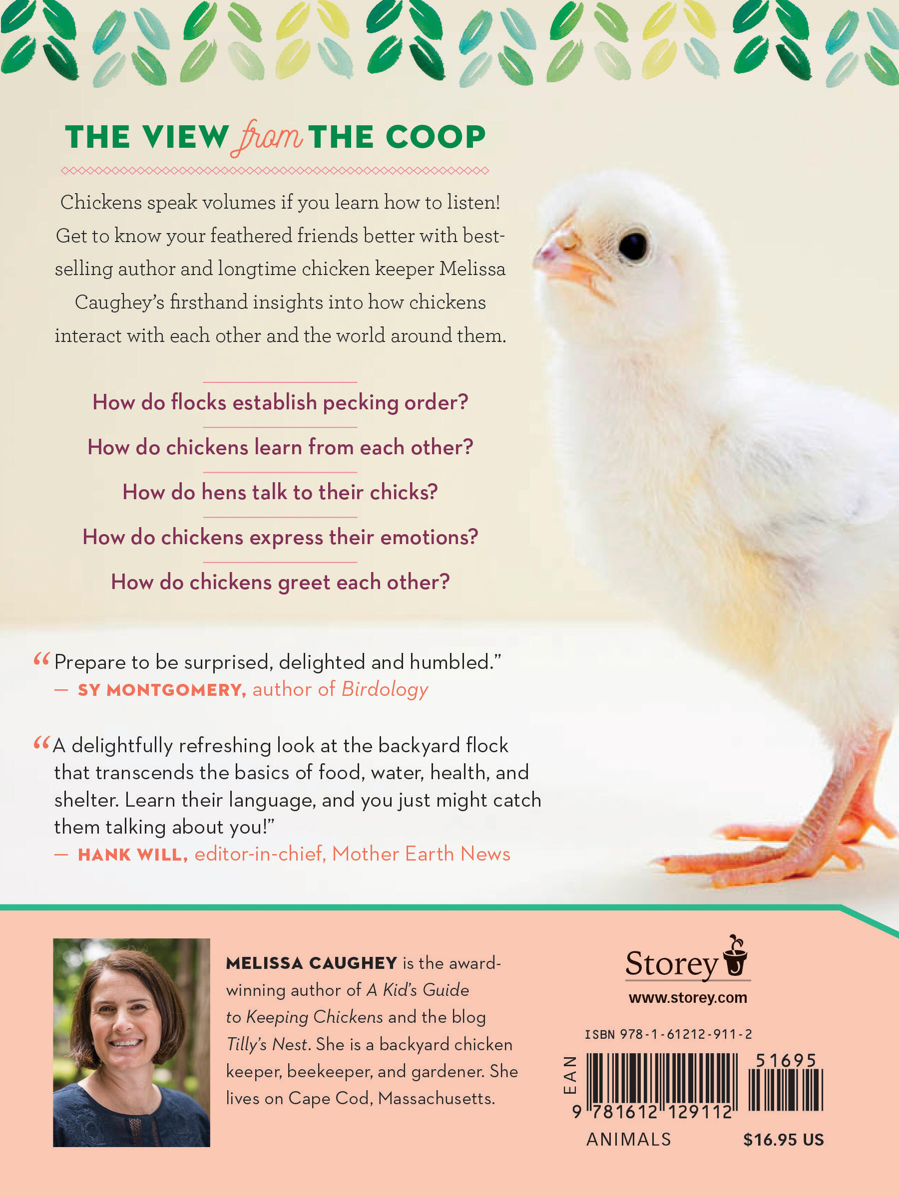 “A delightfully refreshing look at the backyard flock that transcends the basics of food, water, health, and shelter. Learn to listen to your chickens to know how they are doing. Learn their language, and you just might catch them talking about you!” — Hank Will, Editor-in-Chief, Mother Earth News