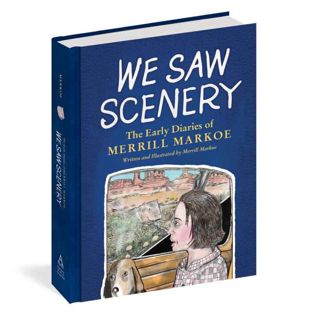 “In We Saw Scenery, you’ll learn that you weren’t the only one who would learn, painfully, that sarcasm—via Mad Magazine—was not the best tool for seduction. You’ll find out you weren’t the only person who’d buy tickets for a hip event—and then want to leave early. It’s gratifying to see teenage Merrill grow her armor—a subversive attitude—that will see her through, despite everything, and you just want to cheer her on. Merrill Markoe’s visual and written analyses of her childhood diaries are acute, devastating, and hilarious. You should buy this book!”