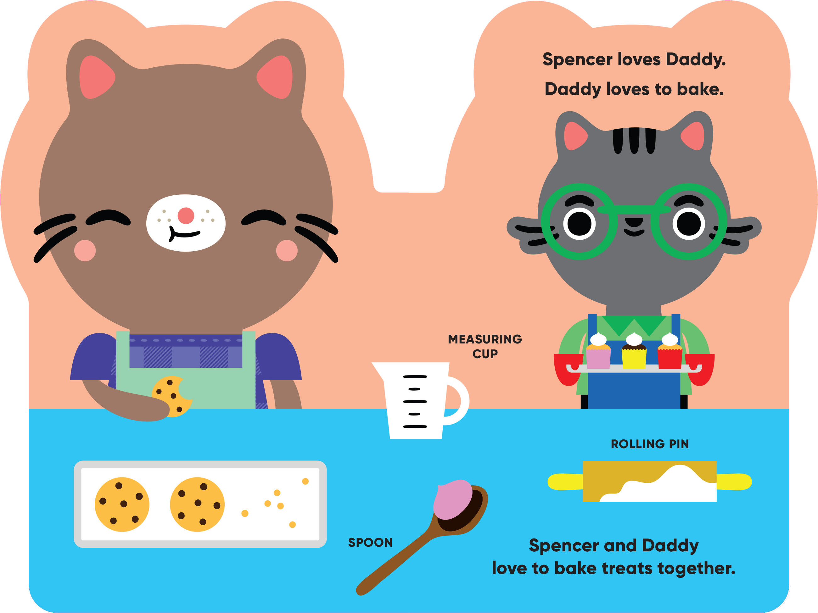 Mommy loves to read, Daddy loves to bake, and his sister, Patty, loves to dance. Join your new friend Spencer and his family—including his fish, Bloop Bloop!—and learn all the words in his world.