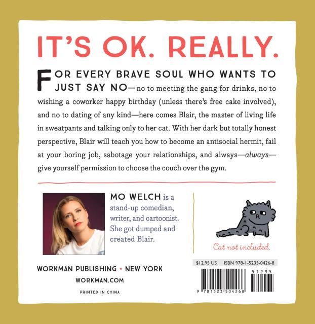For every brave soul who wants to just say no—no to meeting the gang for drinks, no to wishing a coworker happy birthday (unless there’s free cake involved), and no to dating of any kind—here comes Blair, the master of living life in sweatpants and talking only to her cat. With her dark but totally honest perspective, Blair will teach you how to become an antisocial hermit, fail at your boring job, sabotage your relationship, and always—always—give yourself permission to choose the couch over the gym.