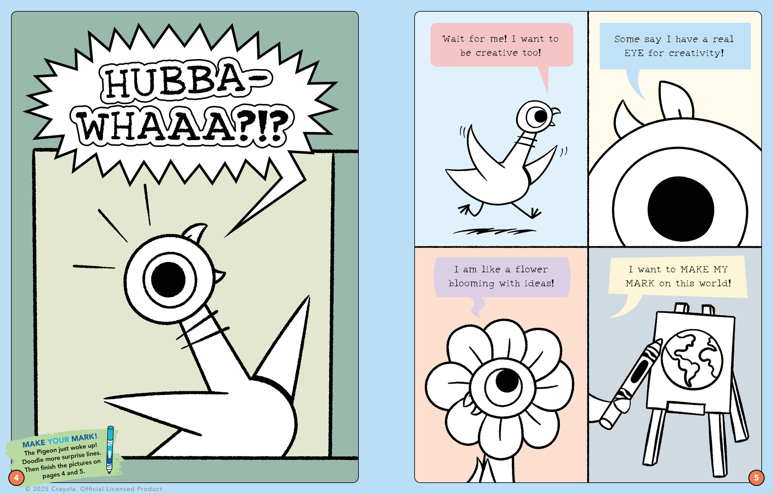 Mo Willems Workshop and Crayola team up for a celebration of creativity with The Pigeon, Elephant and Piggie, and friends in this doodle and play activity book—perfect for little ones to explore their imagination with these beloved characters!