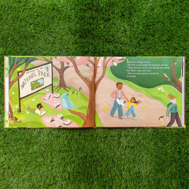 Sparrow is always curious. She loves to go outside and search for animals, drawing her findings in her sketchbook. Today, she’s looking for reptiles that slither, creep, and crawl. But these camouflaged animals are not always easy to spot as they blend into their surroundings. Luckily, Sparrow is patient as well as eager to learn more about the lizards, turtles, and snakes that inhabit the park in her neighborhood.