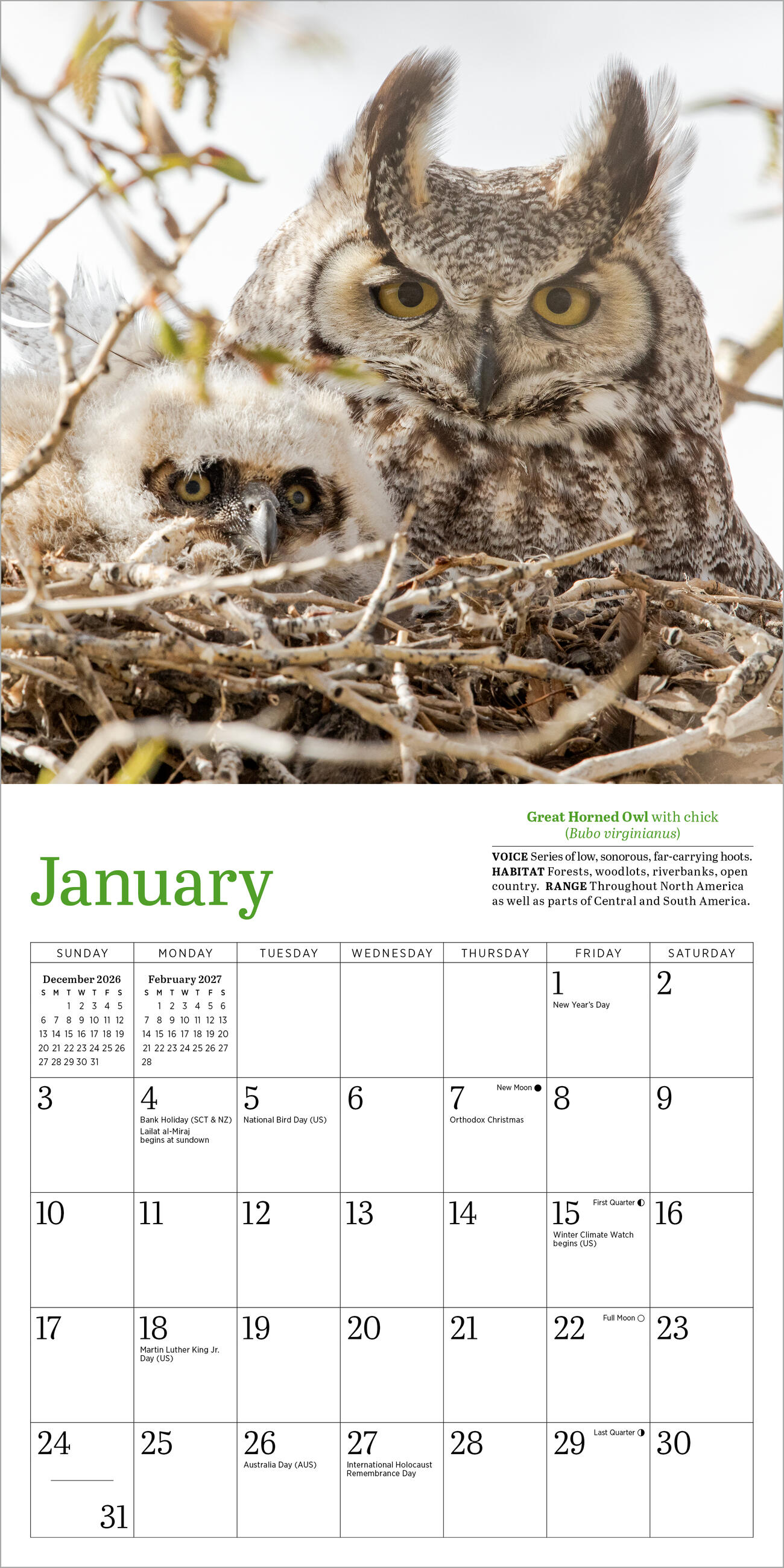 - MINI OWLS, MINI CALENDAR: The 7” x 7” mini calendar format is perfect for lockers, cubicles, and small spaces. Makes a great gift for students, birdwatchers, and owl aficionados!