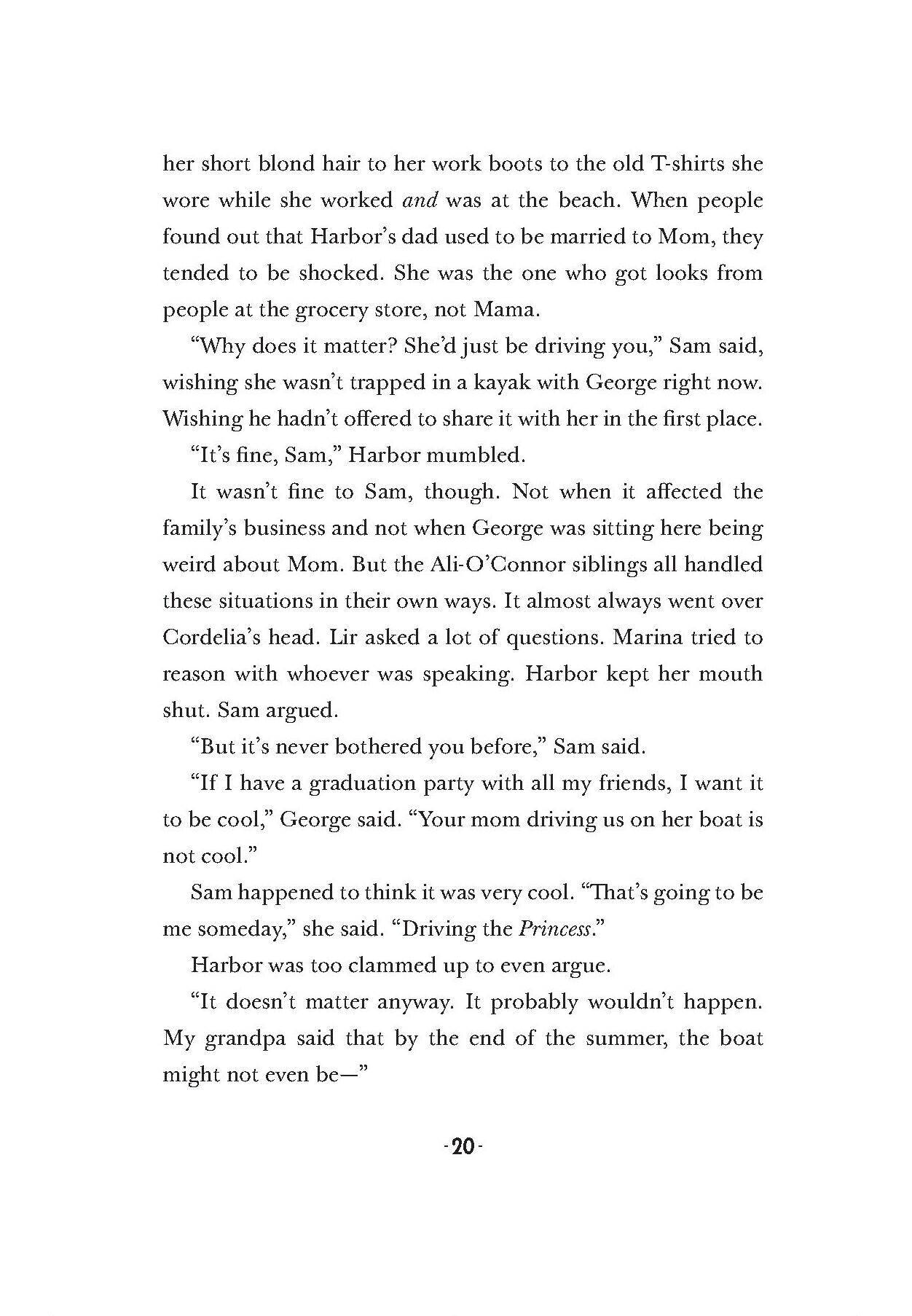 “The Ali-O'Connors are an appealing bunch, each with their own quirks and foibles. The rivalry between Sam (who is adopted) and slightly older sister Harbor (Mom's biological child) is both believable and heart-wrenching at times; Marina (also adopted) is book-loving and reserved; and younger twins Cordelia and Lir (Mama's biological children) add humorous, relatable moments to the story. Perhaps most heartwarming is the tentative alliance that develops between Sam and Harbor as they team up to help Mom.”Booklist