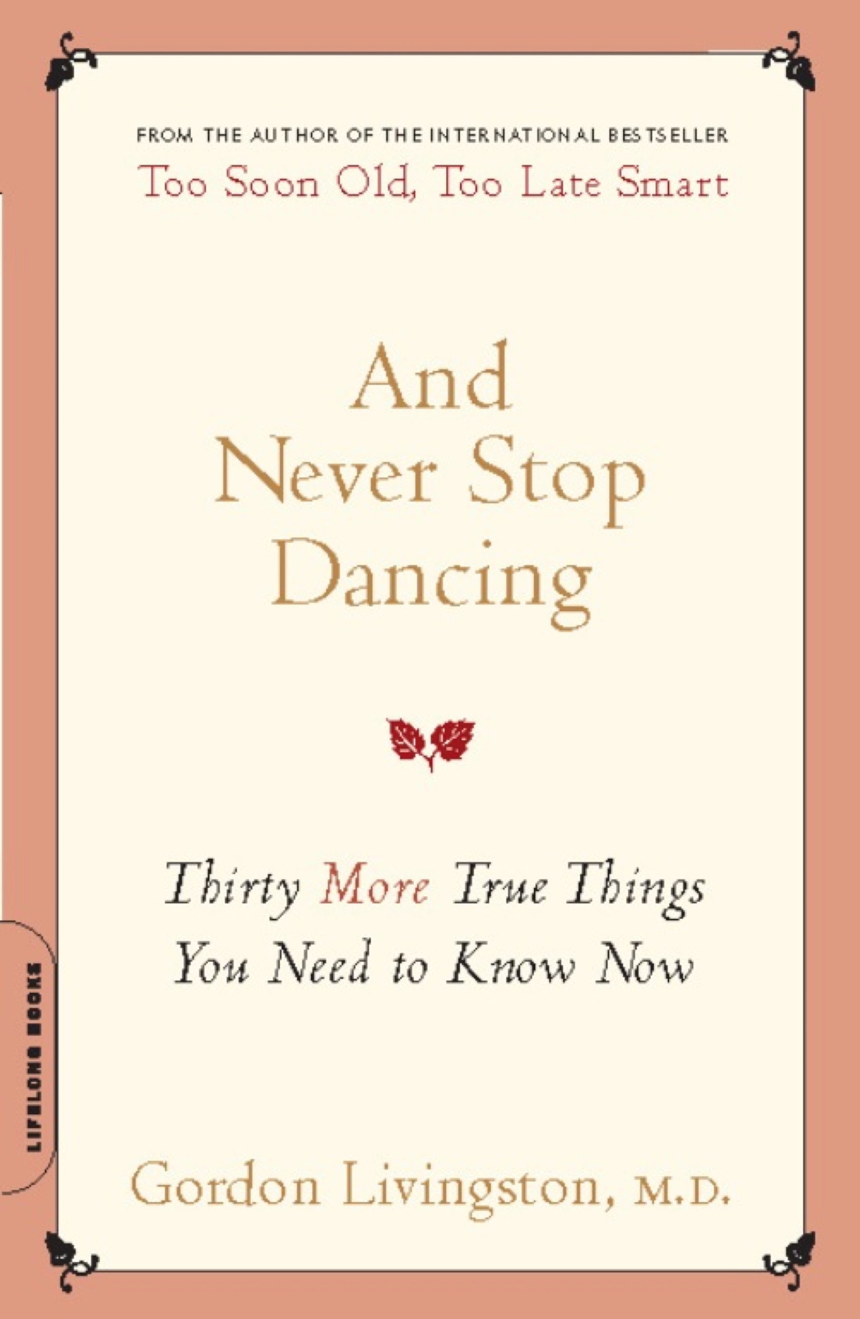In Dr. Gordon Livingston’s follow-up to his national bestseller Too Soon Old, Too Late Smart, he offers thirty more true things we need to know now. Among the fresh truths he identifies and explores in this book, which has sold more than 50,000 copies in hardcover, are: Paradox governs our lives. Forgiveness is a gift we give ourselves. Marriage ruins a lot of good relationships. We are defined by what we fear. We all live downstream. One of life’s most difficult tasks is to see ourselves as others see us. As we grow old, the beauty steals inward. Most people die with their music still inside of them. Dr. Livingston’s sterling qualities are in evidence again: a clear and deep understanding of the hidden hypocrisies, desires, evasions, and emotional tumult that course through our lives; an unerring sense of what is important; and his own ability to persevere-to hope-in a world he knows is capable of inflicting unjustifiable and lifelong suffering.