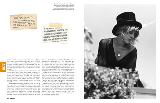 "Olivier Roubin and Romuald Ollivier go deeper than perhaps anyone has before, telling the stories behind every single song the band ever recorded — including many outtakes and unreleased tracks. The result is an exhaustive, 600-plus-page tome documenting both the nitty-gritty musical and production details that went into the making of hits like “Dreams” and “Go Your Own Way,” and the heady mix of emotions and interpersonal drama that inspired the songs."People