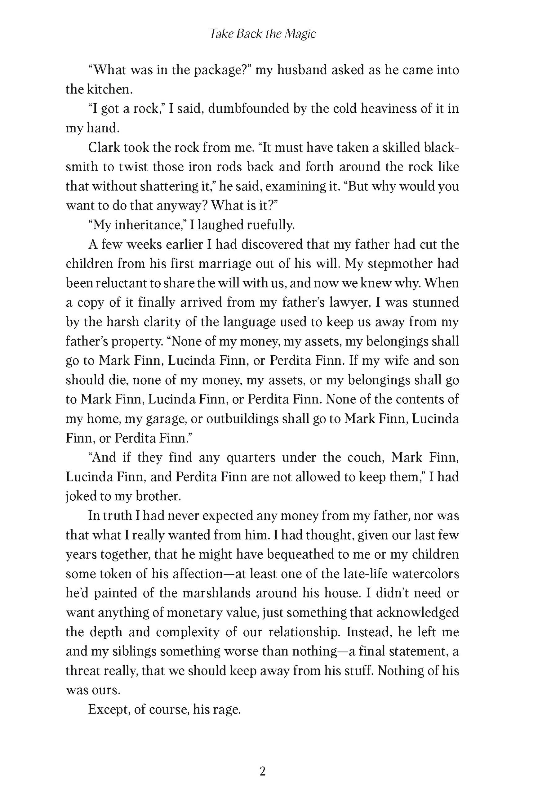 Perdita Finn’s startling, exquisitely written memoir invites us to rethink our relationships with the dead and the invisible world that they inhabit. I picked up Take Back the Magic as a diehard agnostic regarding ghosts, spirits, and posthumous communication with the dearly departed. Finn’s intelligence and integrity opened my eyes to the possibility that I’ve been mistaken. This book is a memento mori for the thinking classes, revelatory, poignant and lucidly observed. I recommend it highly to anyone interested in the mysteries of life and death, and what happens after we leave this world.Mark Matousek, author of Lessons From an American Stoic: How Emerson Can Change Your Life
