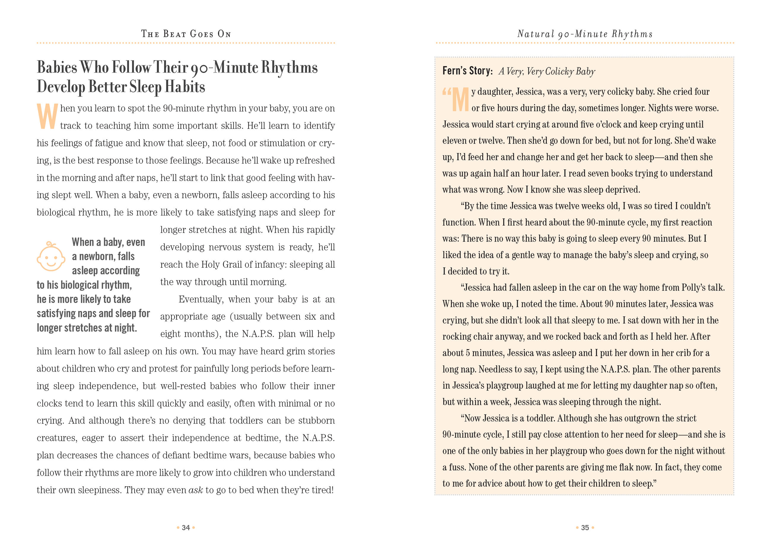 Based on the human rest and activity cycle that occurs every hour and a half, here’s a scientifically based program for parents to help babies get all the sleep they need, both through the night and during the day. The method is simple, foolproof, and yields long-lasting results: truly restful daytime naps (which also gives an infant a head start on cognitive development and emotional intelligence) and consistent nighttime sleep—as beneficial for parents as it is for the baby.