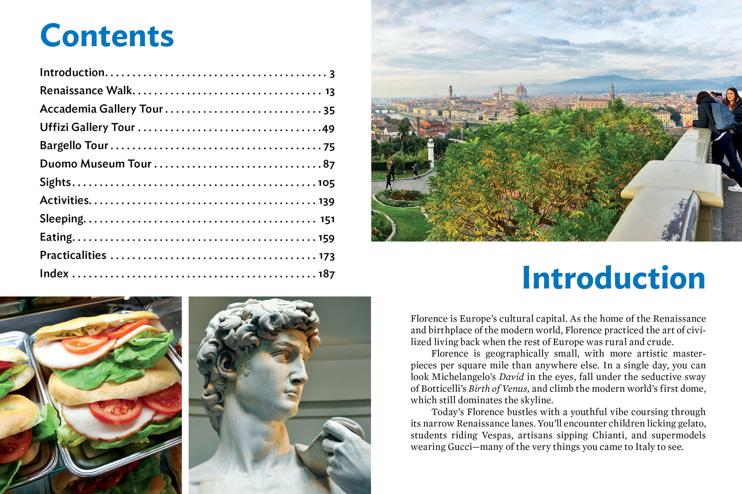 - City walks and tours: Five detailed self-guided walks showcase Florence’s essential sights, including the Uffizi Gallery, the Duomo, and Michelangelo’s David at the Accademia, plus specific recommendations for each neighborhood