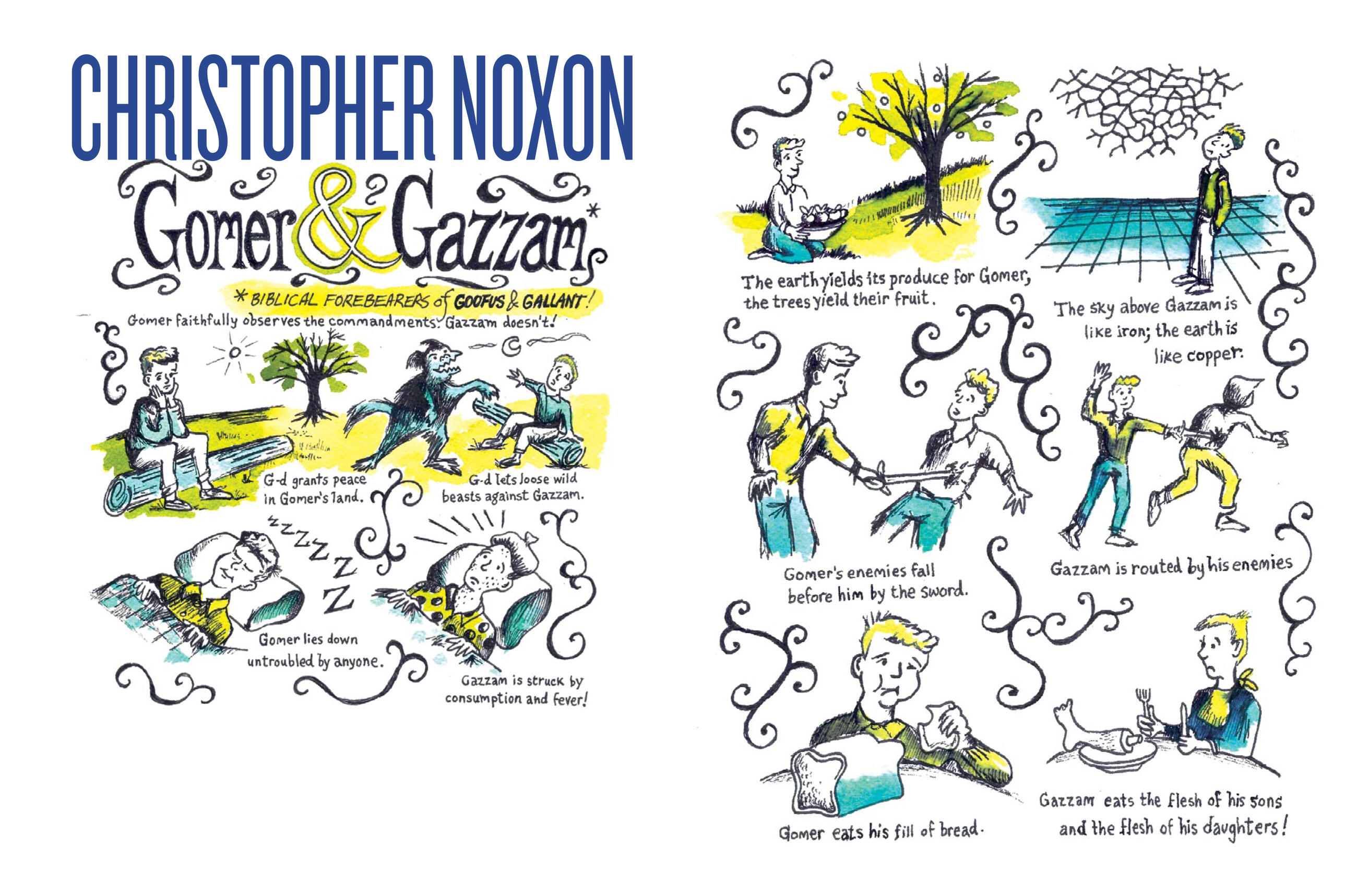 Here’s a graphic-novel version of Moses receiving the Ten Commandments, by Rebecca Odes and Sam Lipsyte. Lost creator Damon Lindelof writing about Abraham’s decision to sacrifice his son. Here’s Sloane Crosley bringing Pharaoh into the 21st century, where he’s checking out “boils,” “lice,” and “plague of frogs” on WebMD. Plus there’s Joshua Foer, Aimee Bender, A. J. Jacobs, David Auburn, Jill Soloway, Ben Greenman, Josh Radnor, Adam Mansbach, and more.