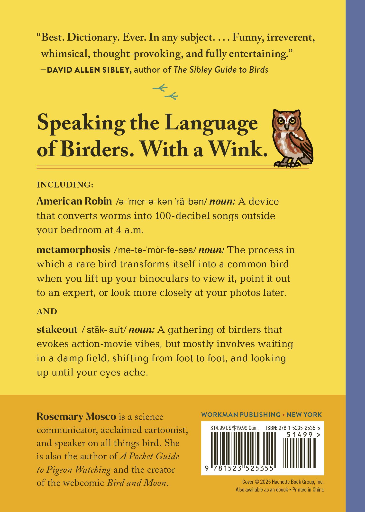 “Best. Dictionary. Ever. In any subject. A bunch of birding words and phrases, given really concise and informative explanations, all presented in Rosemary’s inimitable style: funny, irreverent, whimsical, thought-provoking, and fully entertaining.”—David Allen Sibley, author of The Sibley Guide to Birds