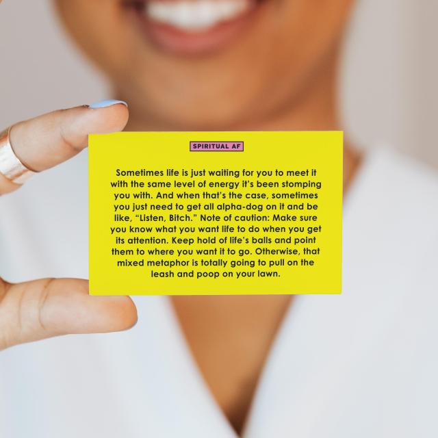 These super-salty, ultra-inspiring cards don’t sugarcoat that it’s often hard AF to grow as a human and be your best self. Use this deck to help you put feet on your spiritual practice. Simply pick a card, read it, do what it says, then see your life get less shitty. It’s spiritual growth in a box!