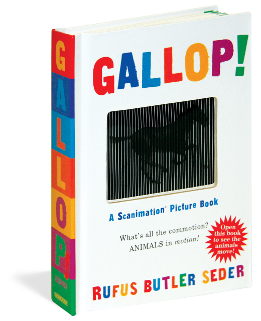 There’s never before been a book like Gallop! Employing a patented new technology called Scanimation, each page is a marvel that brings animals, along with one shining star, to life with art that literally moves. It’s impossible not to flip the page, and flip it again, and again, and again.